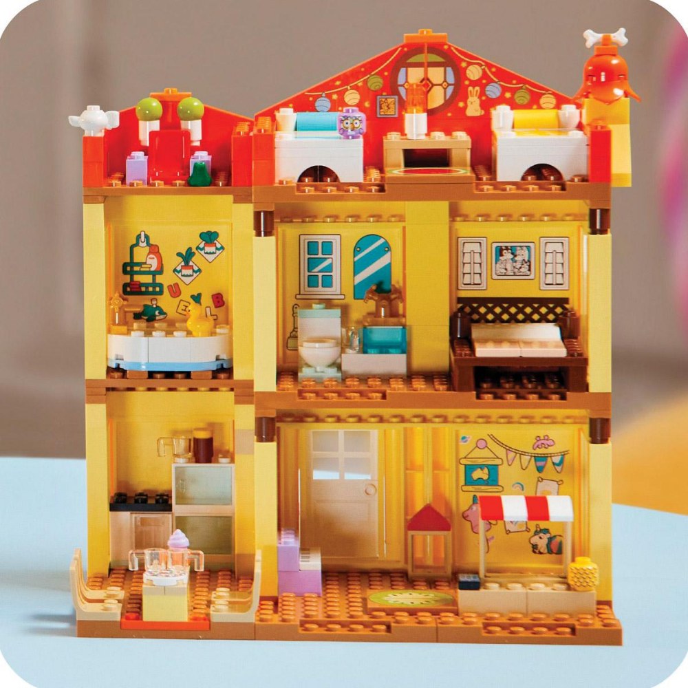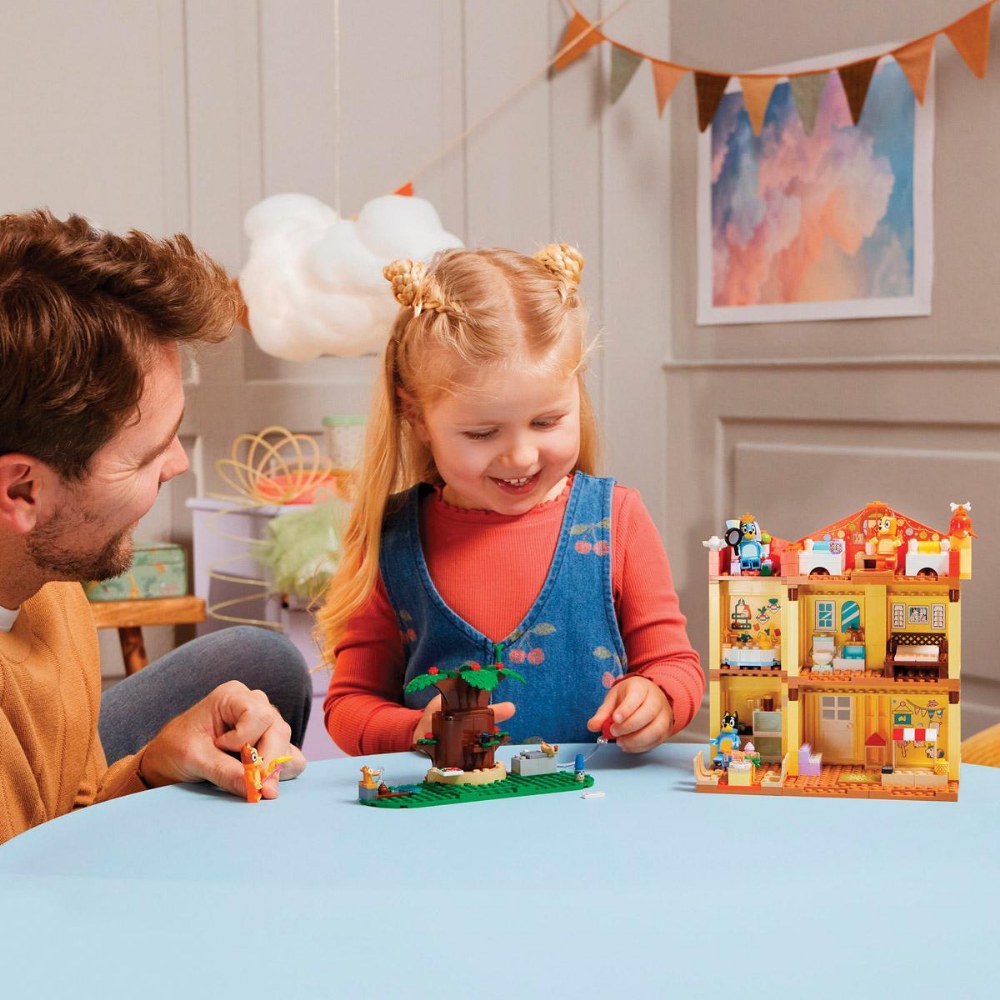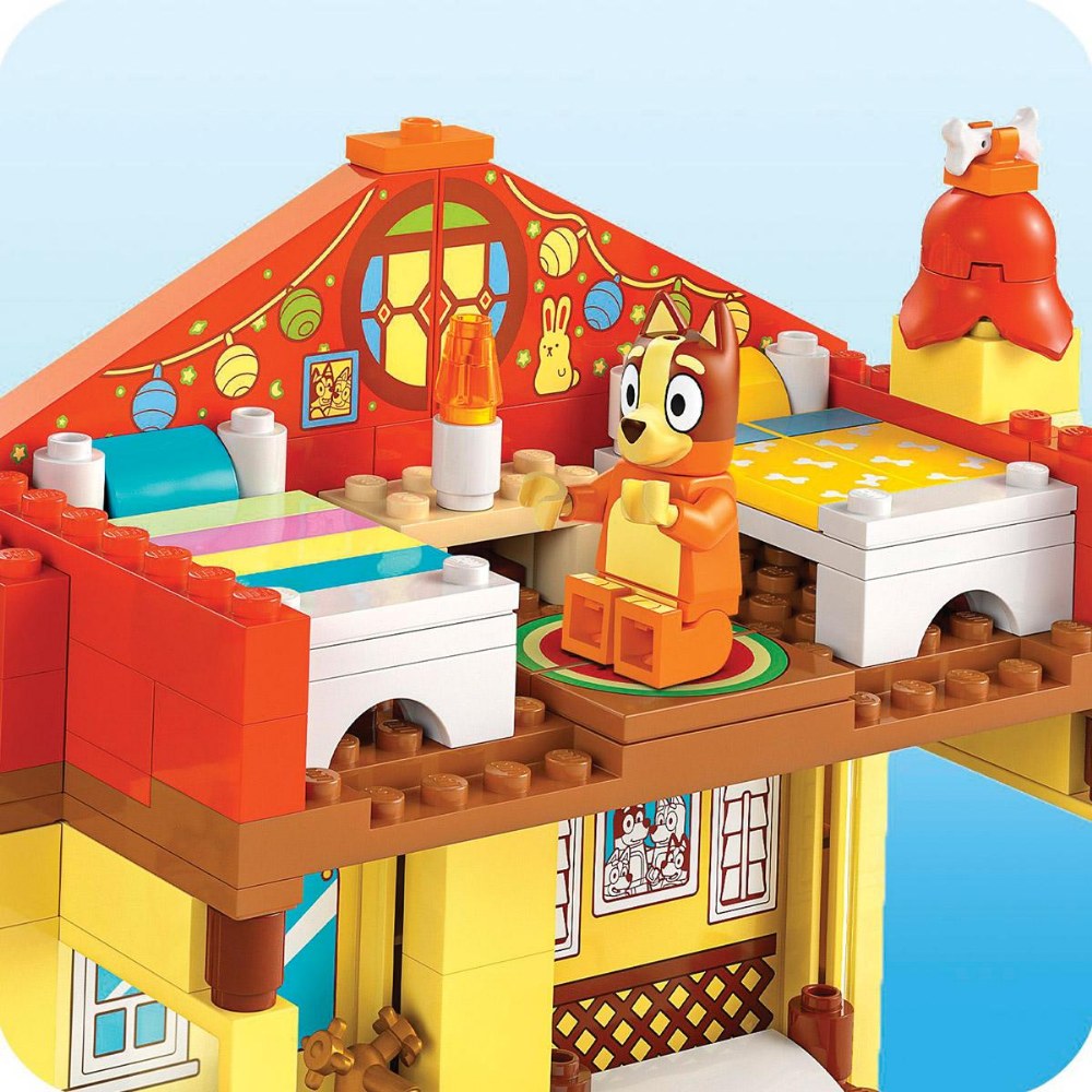 4 years & up. Bring Bluey's beloved home to life with the LEGO Bluey''s Family House playset! This colorful building kit recreates the iconic house from the hit TV show, complete with detailed rooms, familiar characters, and lots of play accessories. The modular multi-room playhouse features detachable spaces for endless configuration options, including the playroom with dollhouse, piano, and food stall; the kitchen with fridge, oven, and dining table; Mum and Dad's bedroom; the bathroom; and Bluey and Bingo's attic bedroom with Chattermax. The set includes all four family minifigures - Bluey, Bingo, Mum (Chilli), and Dad (Bandit) - plus Jeremy the gnome and accessories like a rainbow cape, teapot, and pretend food. Contains 382 pieces.