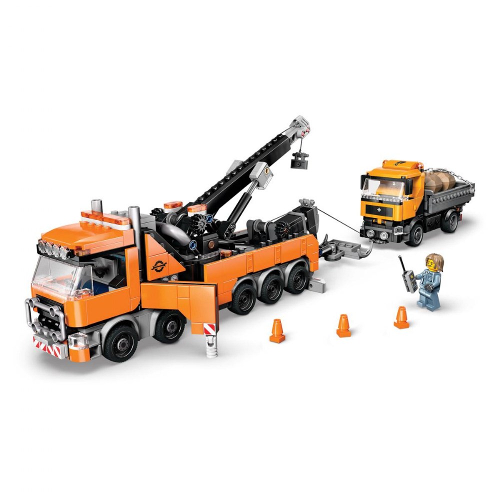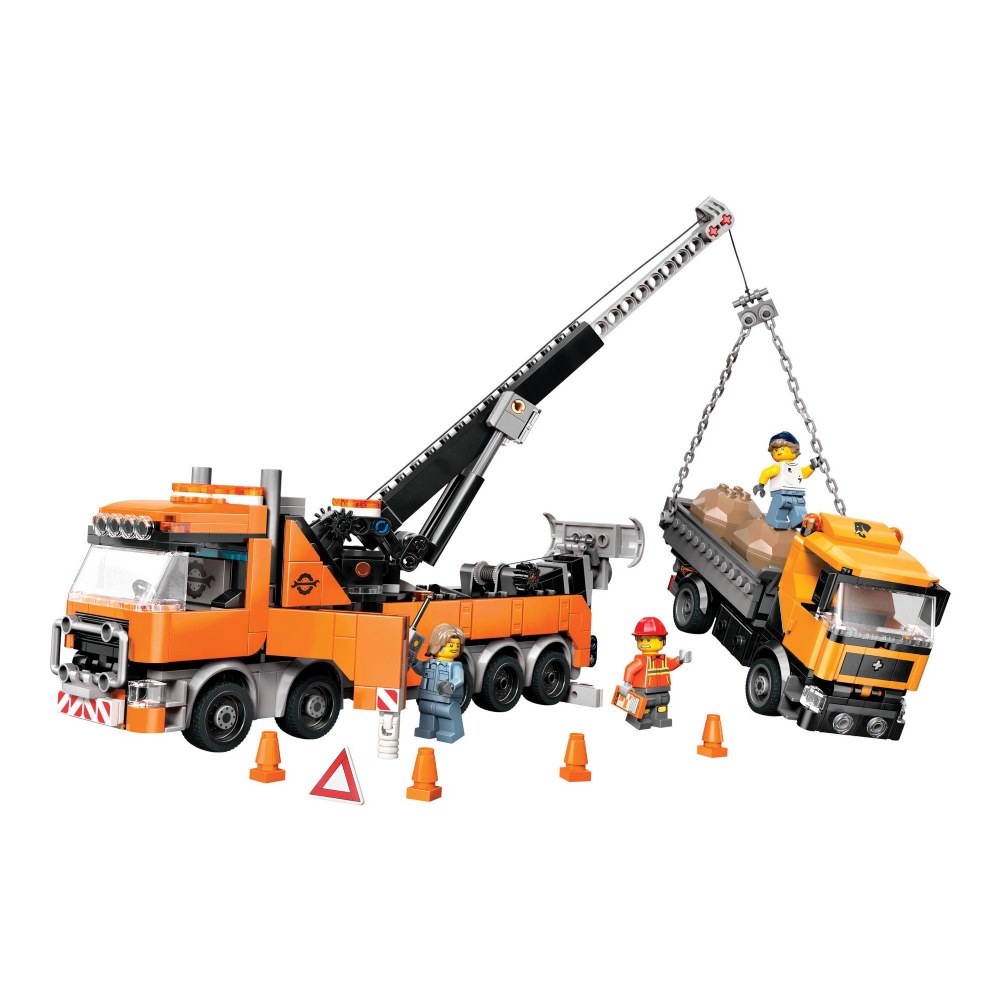 8 years & up. Young truck enthusiasts can take charge of roadside rescues with the LEGO City Heavy-Duty Recovery Tow Truck with Crane! This action-packed set features a giant rotating crane, stabilizing outriggers, and a rear lifting system with a powerful winch to safely load broken-down vehicles. Kids can also tackle a dump truck with a spilled boulder, using realistic crane controls and hydraulic-style lifting mechanisms, plus accessories like traffic cones, a walkie-talkie, a wrench, and a warning triangle. Three worker minifigures bring the scene to life, encouraging imaginative storytelling and hands-on problem solving. Set includes 793 pieces.