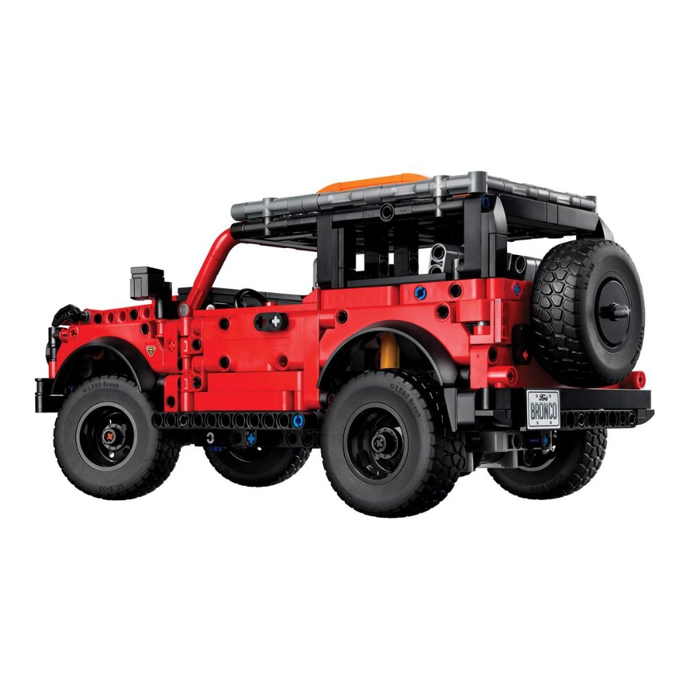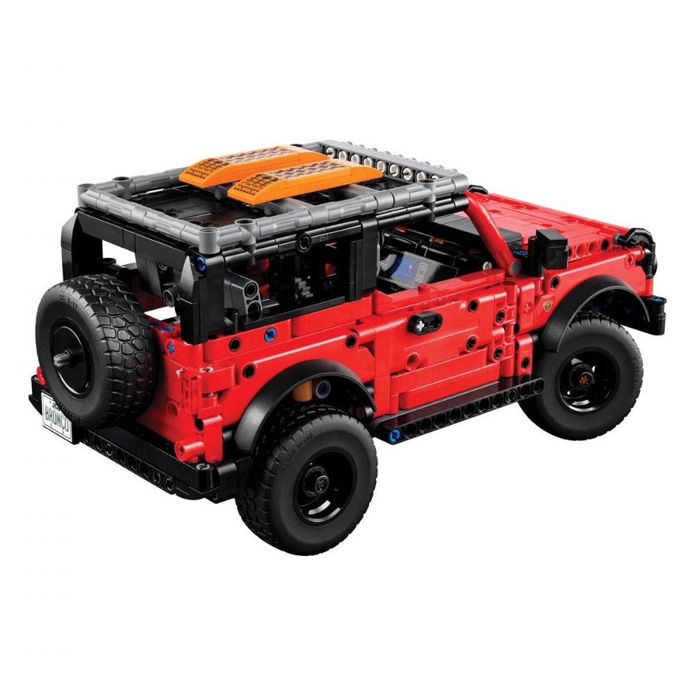 9 years & up. Hit the trails with the LEGO® Technic Ford Bronco SUV, a 943-piece building set that captures the rugged spirit of the legendary off-roader. This advanced model features working suspension with front and live rear axles, a detailed V6 engine under a lift-up hood, and doors that really open. Builders can steer the vehicle using the functional spare wheel on the back, then load up the roof rack and removable traction boards for make-believe wilderness adventures. With its striking red-and-black color scheme and realistic engineering, this hands-on STEM toy teaches mechanical principles while delivering hours of creative play.