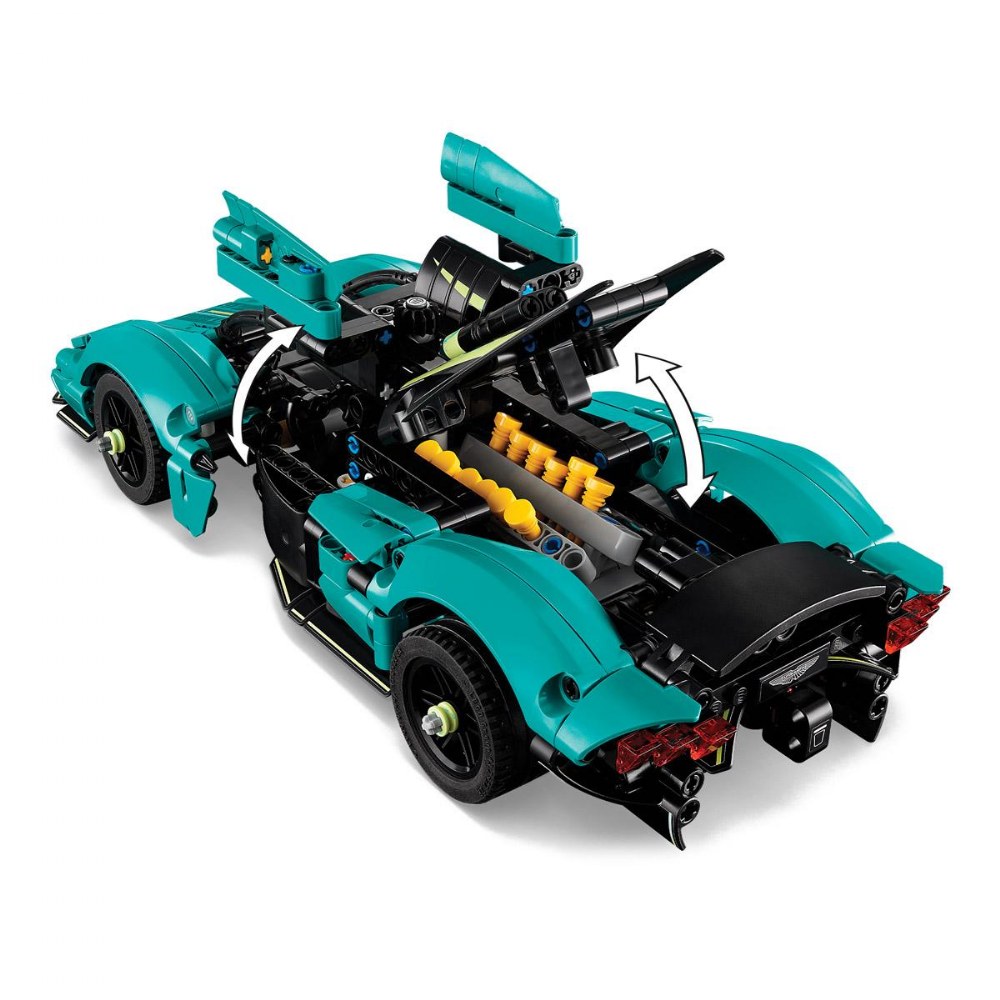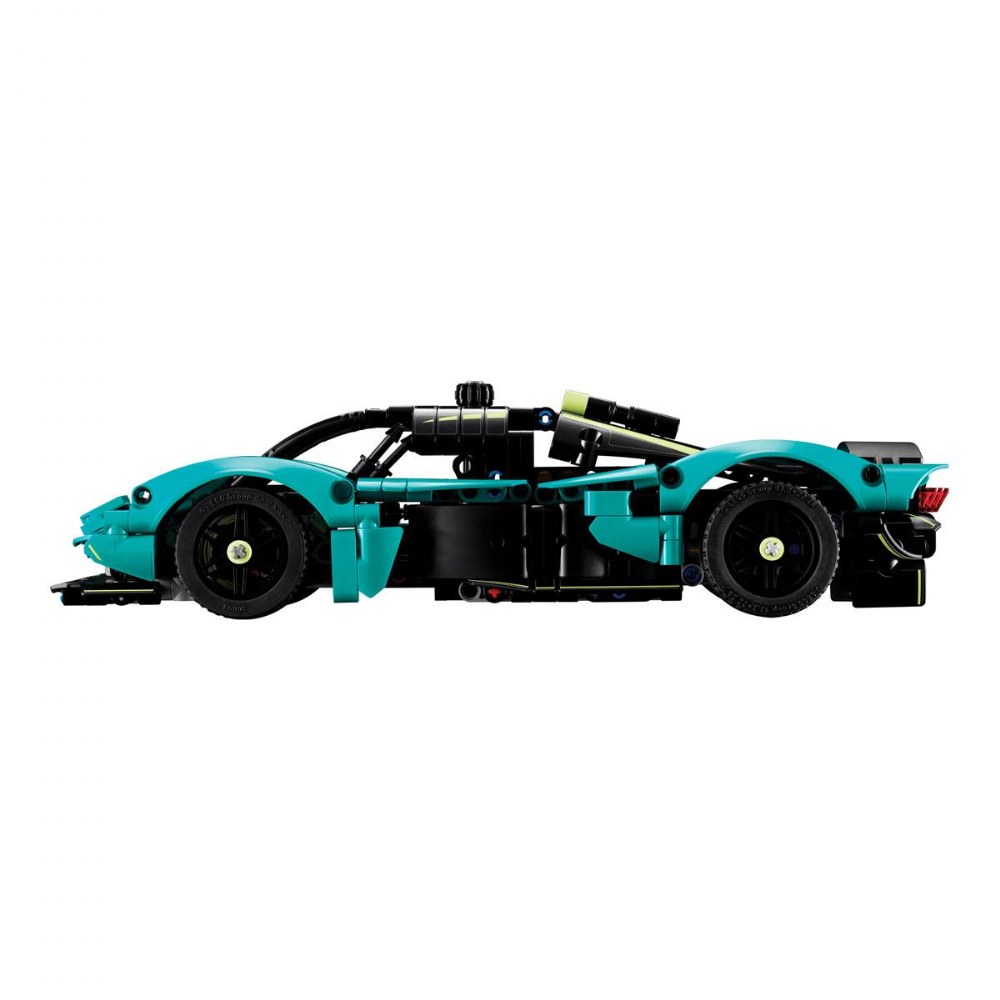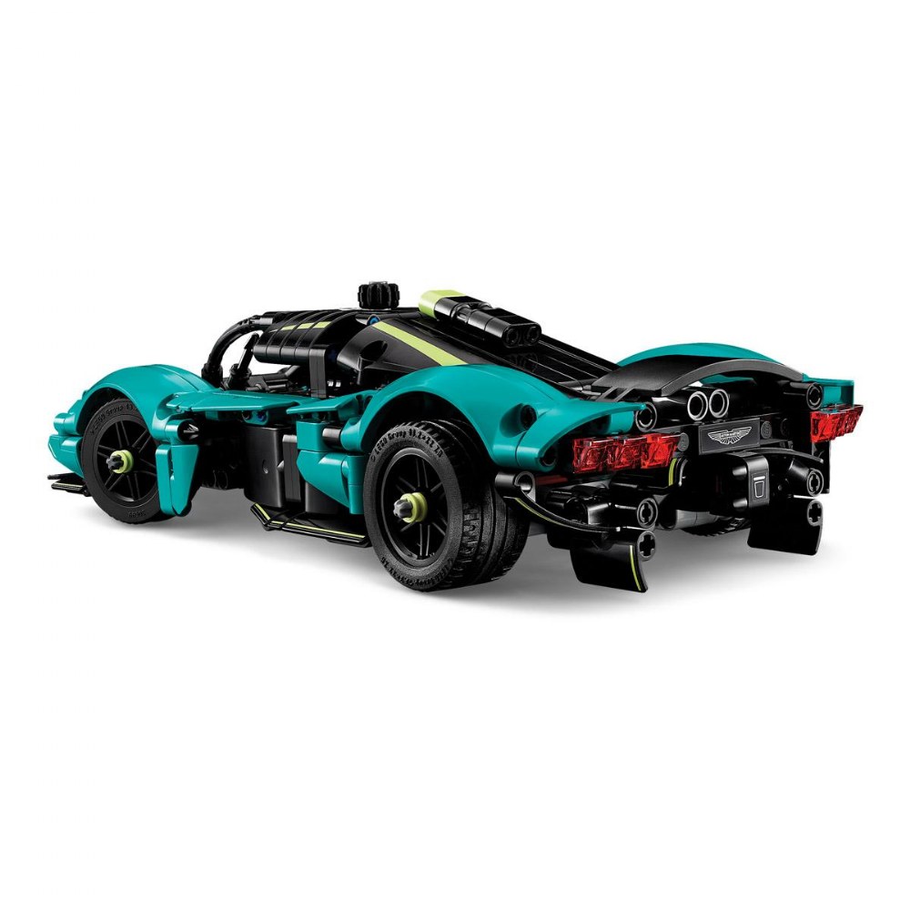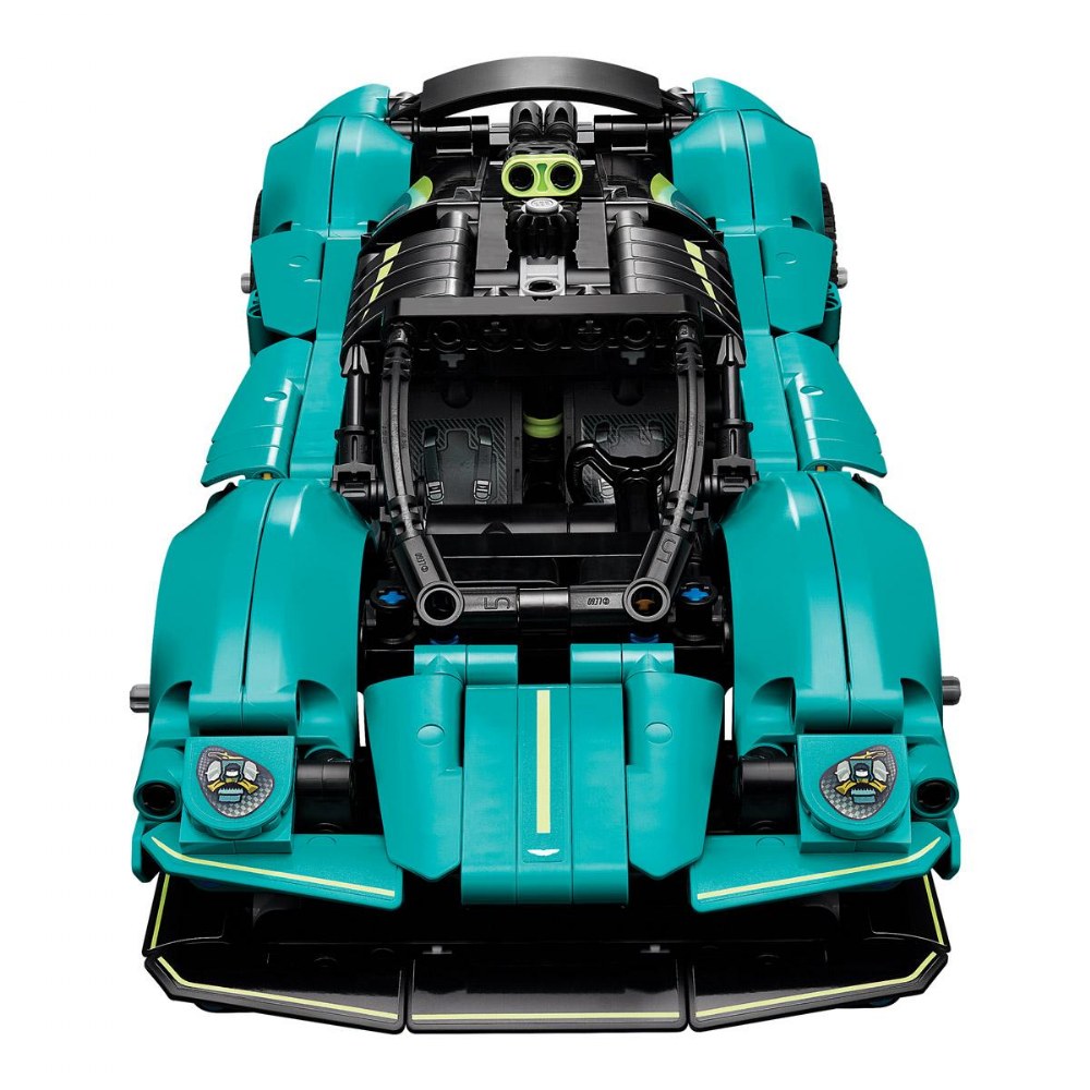 9 years & up. Young auto enthusiasts can build a British automotive legend with the LEGO® Technic Aston Martin Valkyrie model car kit. Inspired by the real-life supercar's sleek aerodynamics and racing pedigree, this set delivers an engaging, hands-on construction challenge. Builders assemble impressive mechanical features such as functional steering controlled by a top-mounted knob, signature gullwing doors that open realistically, and a detailed V12 engine visible beneath the lifting hood and engine cover. As kids turn the driver's side wheel, they can watch the pistons move and explore the working differential to understand real gear mechanics-an exciting STEM learning opportunity. Perfect for car lovers and future engineers! Set includes 707 pieces.
