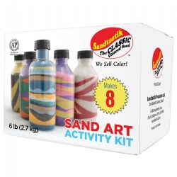4 years & up. Layer different sand colors in jars to make cool patterns and designs! This make your own Sand Art Kit comes with everything your children need to make beautiful sand bottle decorations they can display in the classroom, at home, or on the desk of someone they love. Included: 8 Clear bottles with twist on/off lids, 10 Sparkling sand colors, and 2 Sand funnels.