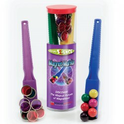 4 years & up. Explore the magic of magnetism all with the wave of a wand! Kids can experience the power of magnets by using brightly colored wands and accessories for endless fun. Each kit includes: 2 Magnetic wands, 10 Magnet marbles, 50 Metal-rimmed counting chips, and an Activity booklet. Purchase 3 kits together as a set or buy individually.