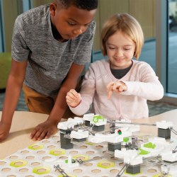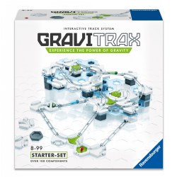 8 years & up. Experience the power of gravity with the Gravitrax Starter Set! Build your own action-packed track system to send your marbles racing while learning about gravity, magnetism, and kinetics. With over 100 pieces and 18 different construction elements, discover how the laws of physics affect the track your marble takes with curves, crosses, freefalls, and even a cannon. Experiment using different heights and angles to control the speed of the ball. Build your track using the construction plans and tasks or let your creativity take control and design a one-of-a kind track. Use the free Gravitrax App to design tracks with the building editor and race using different balls and camera perspectives. Test your system and use the blueprints to build the actual system. The app is available for Apple and Android.