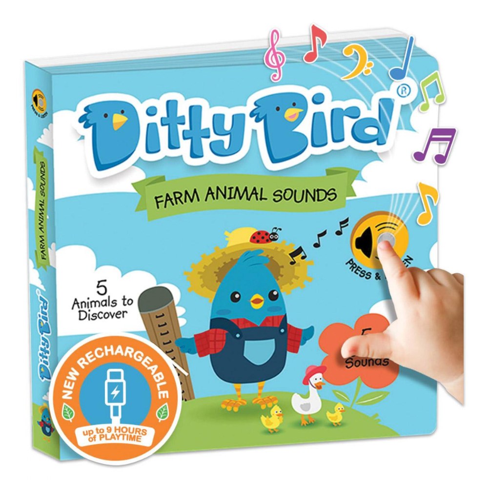 12 months & up. Bundled exclusively by Ditty Bird for customers here at Kaplan Early Learning, these musical books will brighten any day! In the Farm Animal Sounds book, follow Ditty Bird on many musical journeys with 5 of his favorite farm animal sounds, along with his favorite animal sounds song. In the Cute Animals book, explore 5 of his favorite cute animal real-life sounds and 5 beautiful textures. Through these two musical books, children will discover textured illustrations and animal sounds. Each book comes with three LR1130, instructions for replacement can be found on the back cover of the books. Includes 2 musical books.