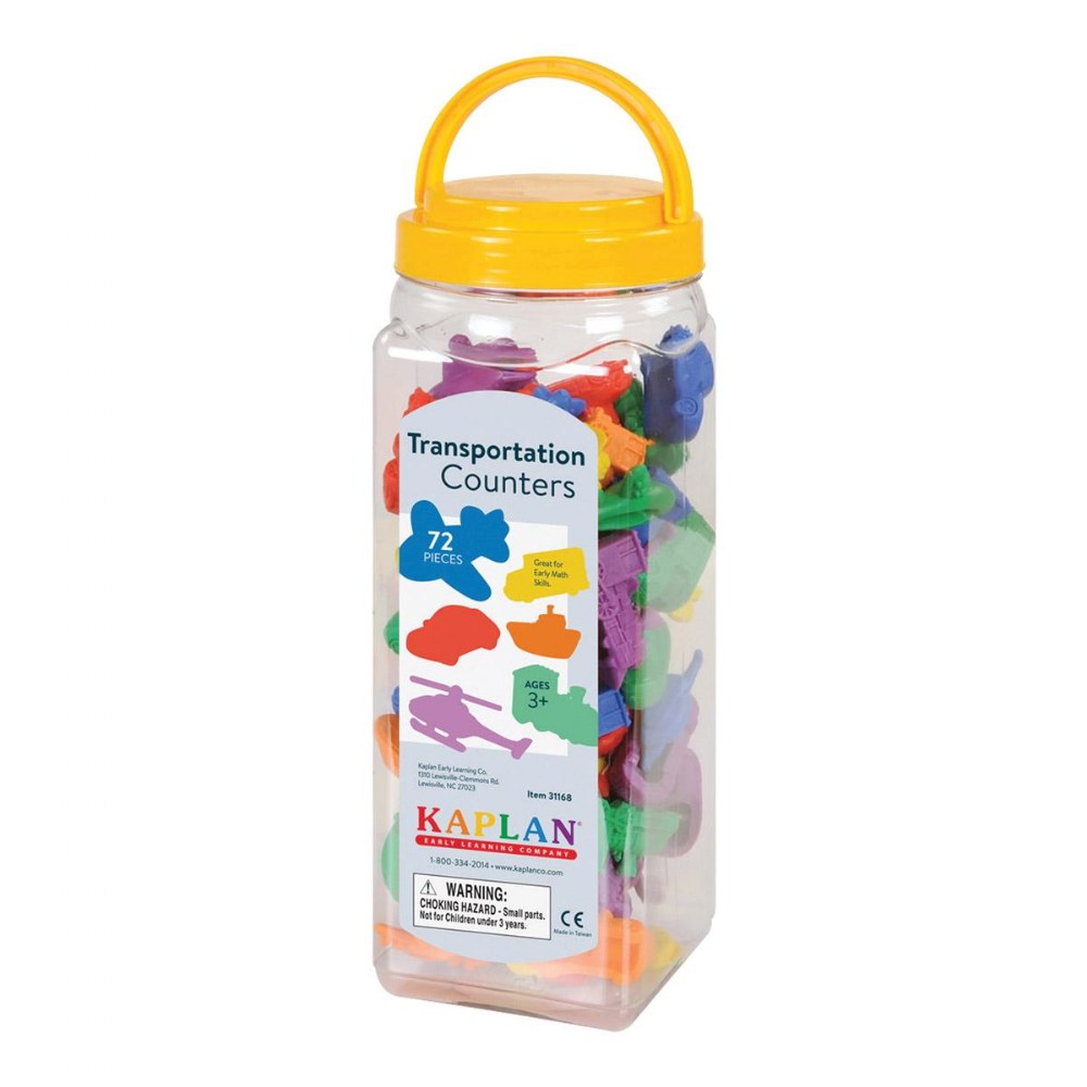 3 years & up. Develop your children's counting skills with these exciting Colorful Transportation Counters with Containers for practicing early math skills. These counters represent six different modes of transportation in a variety of colors. Children will love mimicking the sounds of the different vehicles as they count. These counters promote fine motor skills, early math skills, patterning, sorting, and color recognition. Each container includes 72 counters.