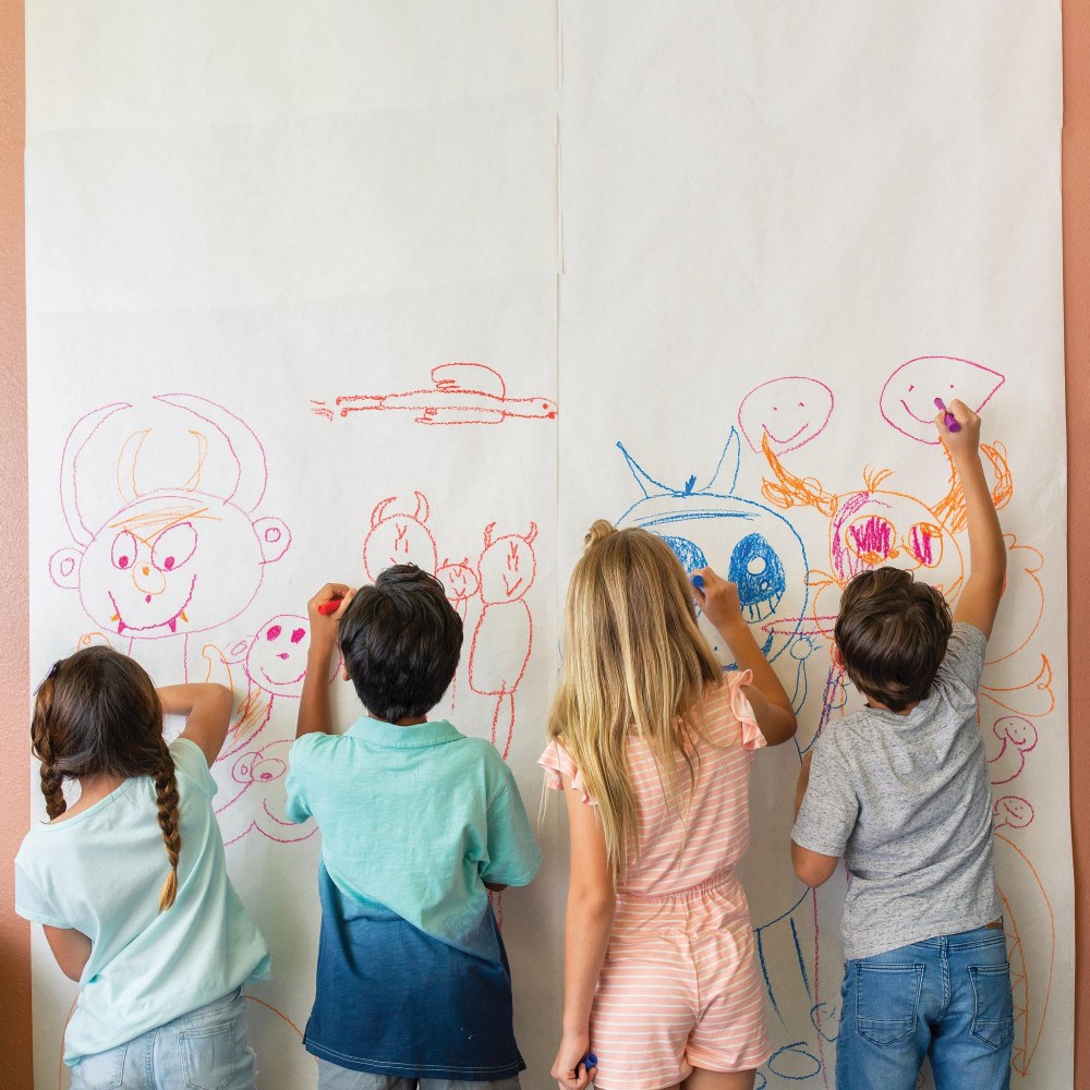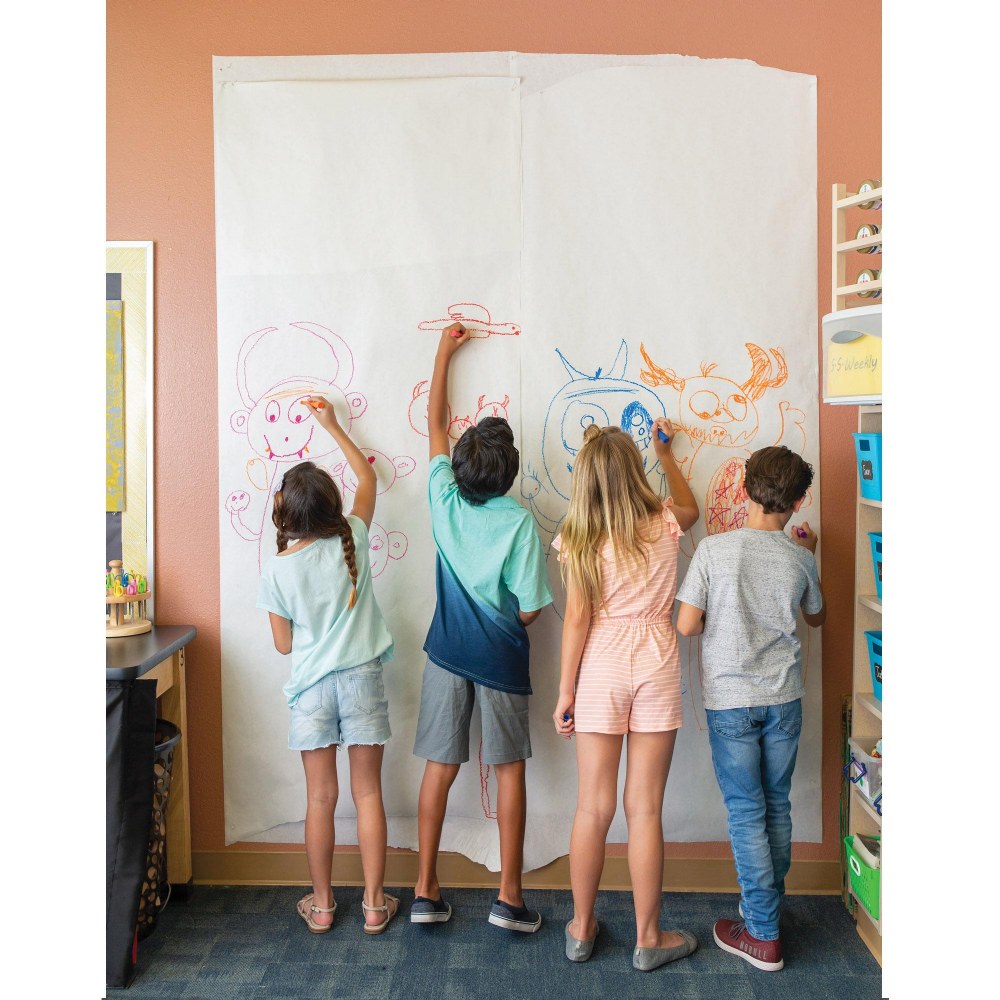 5 years & up. Kraft Paper is an all-purpose paper. Great to use for finger painting, table covers, murals, craft projects and more. Paper is recycled and recyclable. Measures 18" wide x 1000' long.