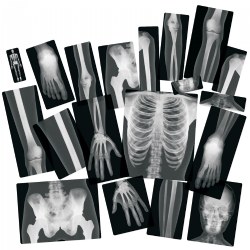 4 years & up. Introduce the skeletal system to children with this complete x-ray set! Hold these life-sized human x-rays up to the light or use them on a light table and see every authentic detail of a real skeletal system. Arrange the 18 pieces together to reproduce the entire body of a young adult. 5' tall. Teacher guide included.