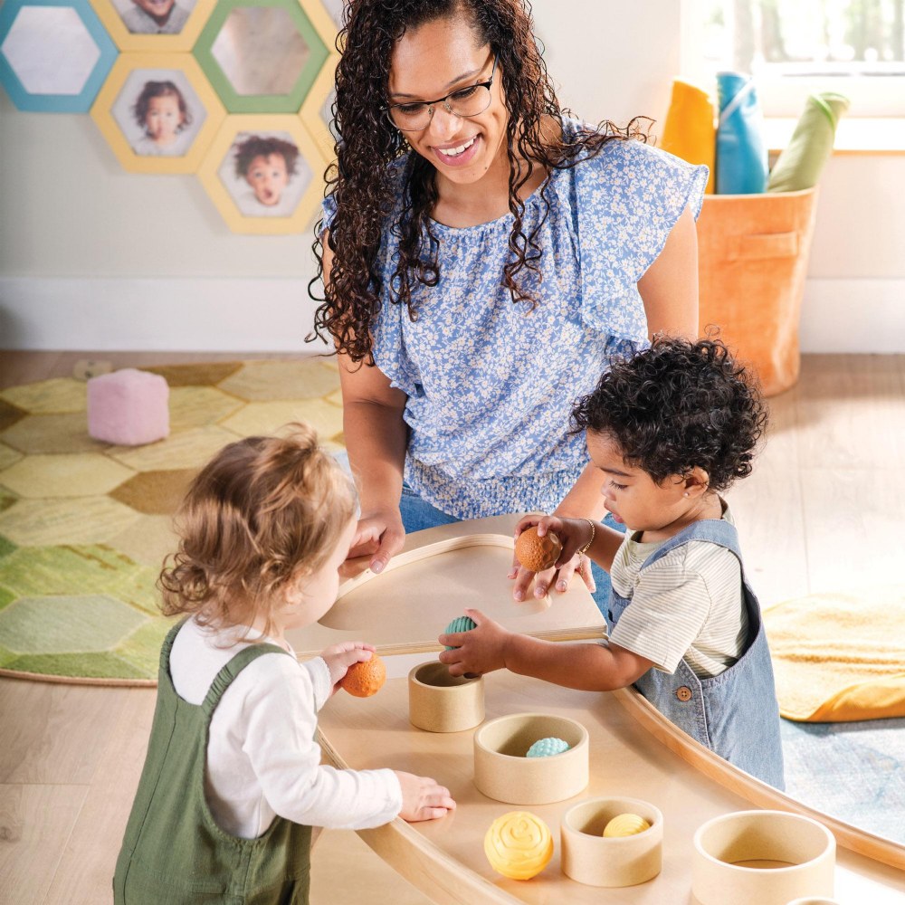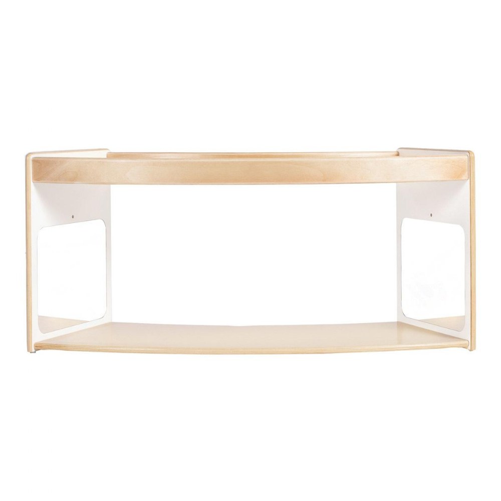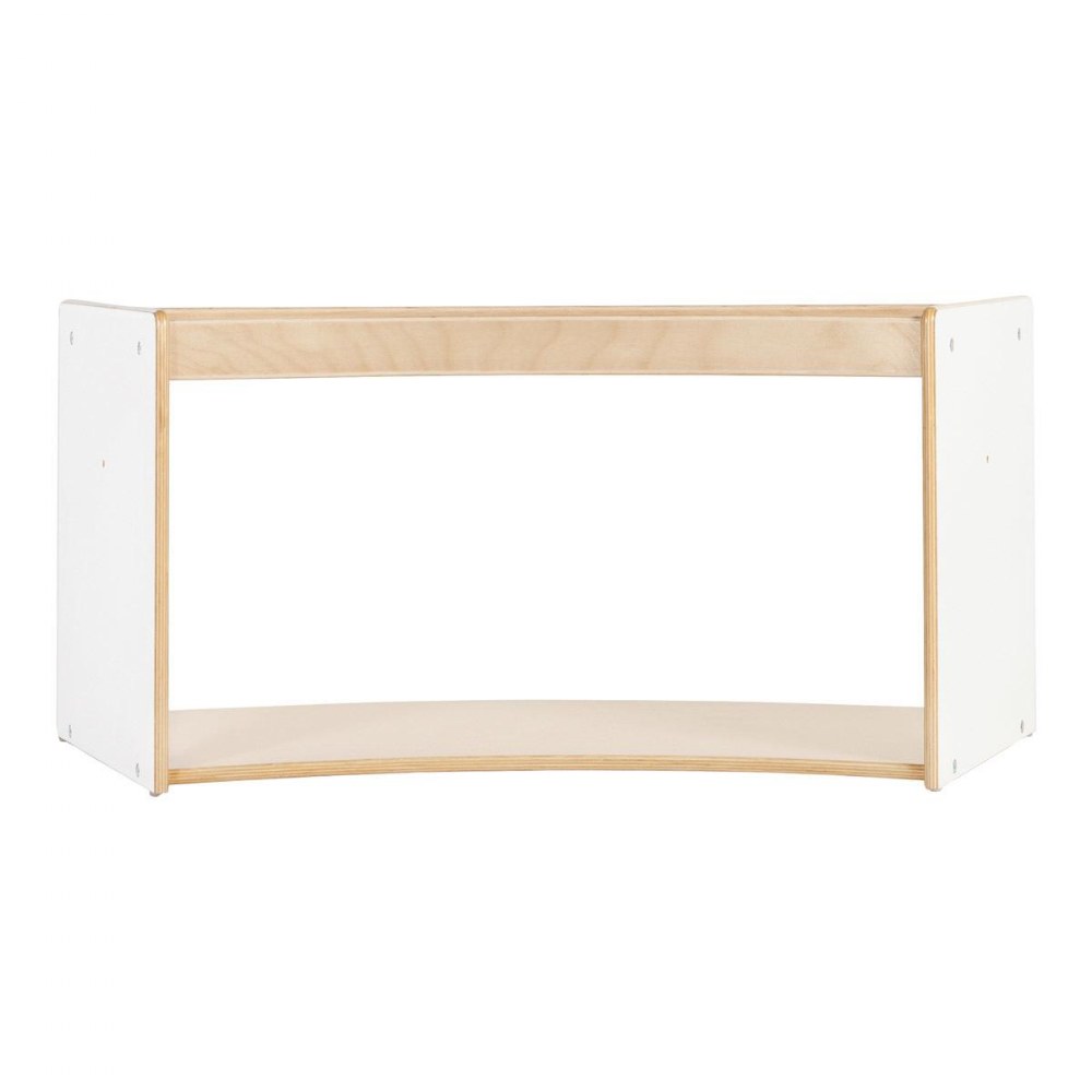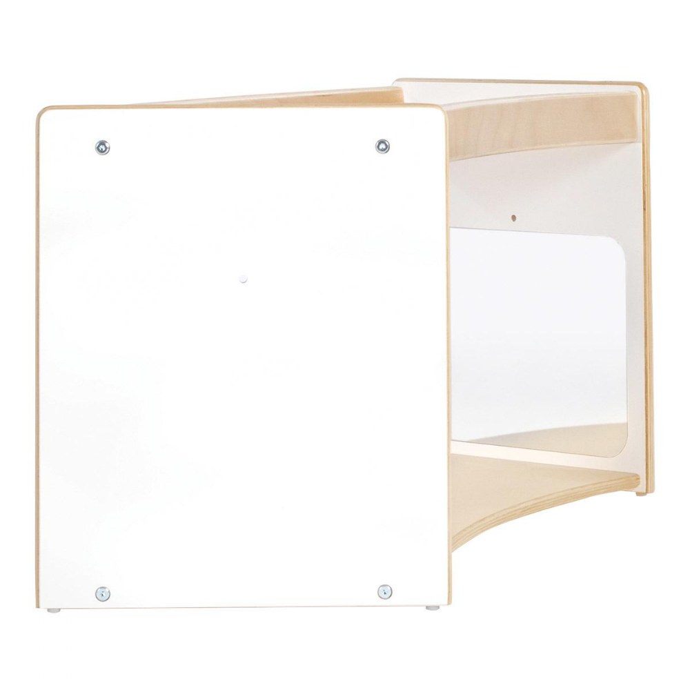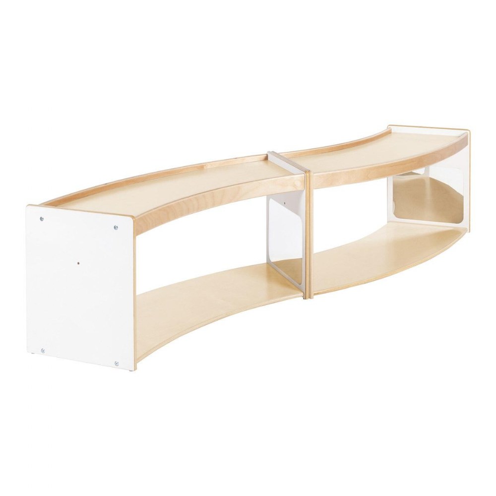 1 - 3 years. Encourage young children to move, play and explore with functional, multi-purpose furniture that is designed with their play patterns in mind. The Sense of Place Crawl Through Storage is a unique storage solution that encourages children's physical and cognitive development. The curved shape divides the classroom using nature-inspired geometry, while the playful open shelf acts as a playful transition between zones. Shatter-resistant mirrors on opposite inner walls encourage self-awareness, interaction and connection for crawlers, while the raised edge of the top shelf encourages those just learning to walk to pull up. Create a modular system with multiple units or other pieces from the Sense of Place for Wee Ones Collection using durable hardware. Made from a durable blend of white laminated plywood and solid birch, this unit will stand up to the rigorous nature of early childhood environments. Measures 40"W x 18"H x 17.5"D.