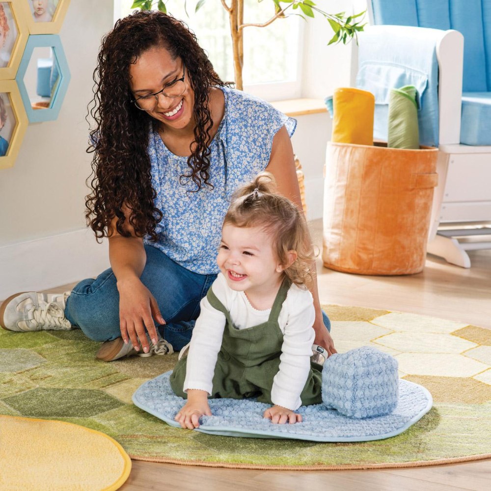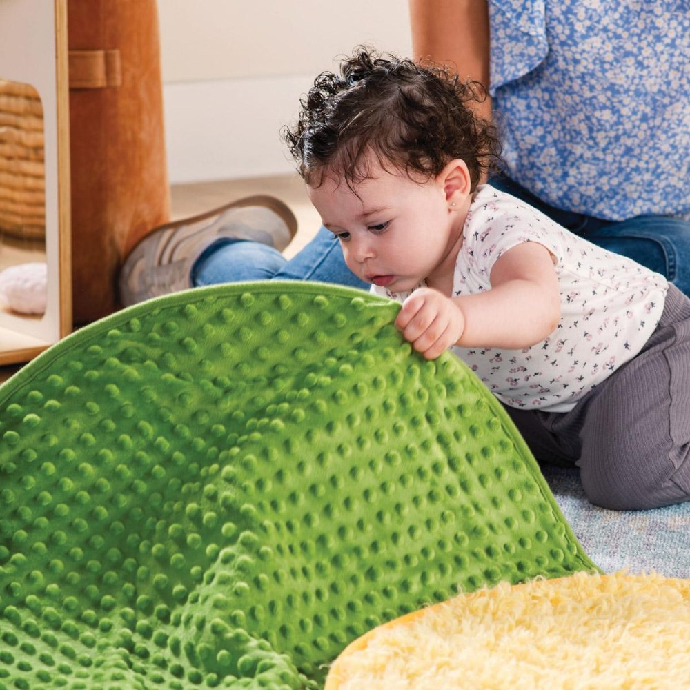 Designed to support sensory needs, this set of textured, colorful carpets is the perfect addition to classrooms for infants or young children. Non-skid backing makes each one a perfect seat on the floor for sensory input, or for crawlers to explore with their hands and feet. Conveniently store machine washable carpets in the included fabric basket when not in use. Each carpet measures 24" in diameter.