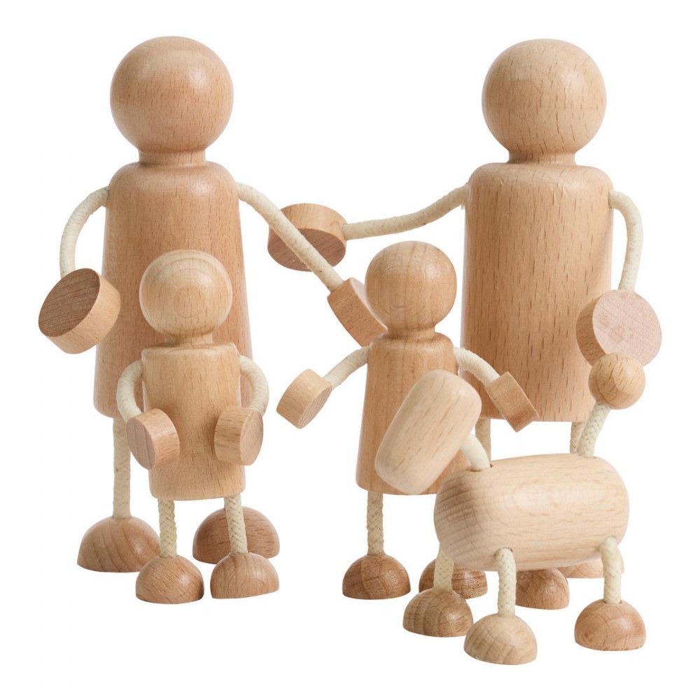 3 years & up. Bring play to life with a set of wooden play people and pets. Complete with figurines to represent a family of 4 and their pet dog, the Wooden Family Playset is the perfect addition to dollhouses and pretend play zones. Rounded edges and a natural wooden color provide a beautiful, subtle way for children to engage in play. Set includes two adult-sized figures, two child-sized figures and one dog.