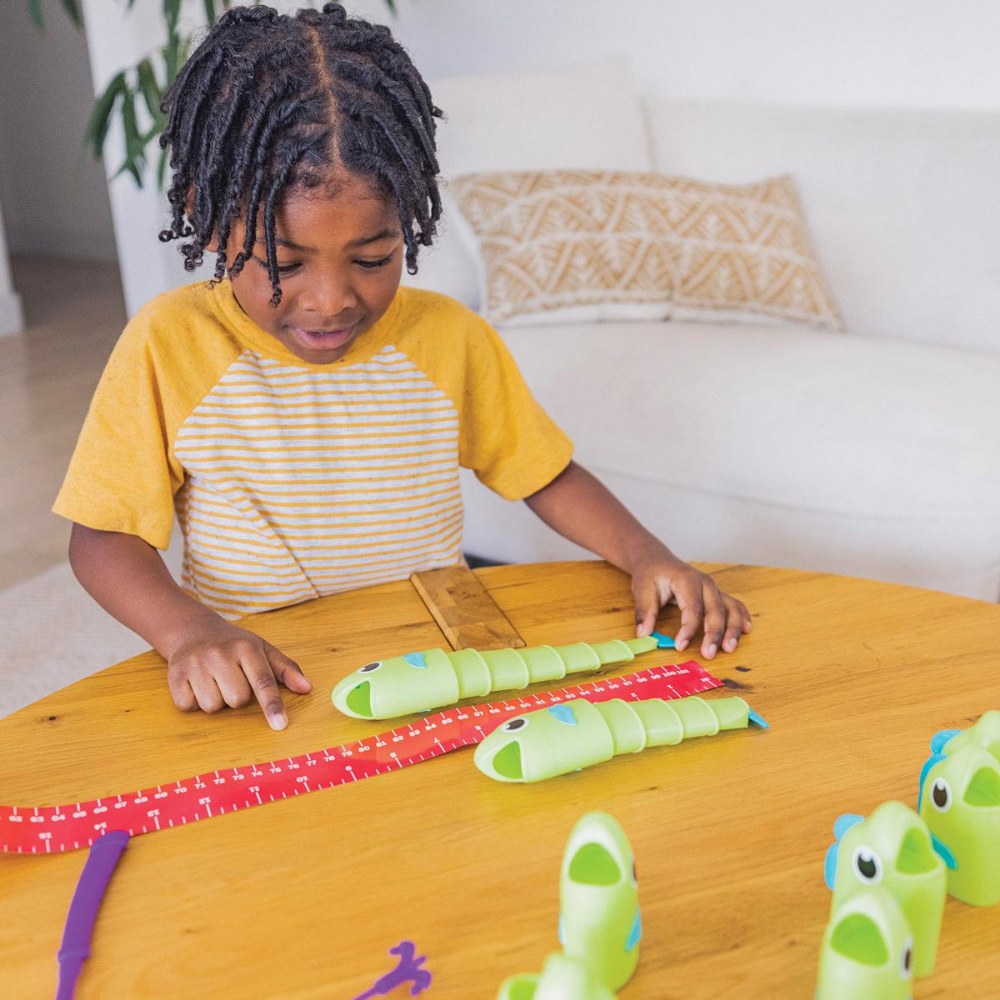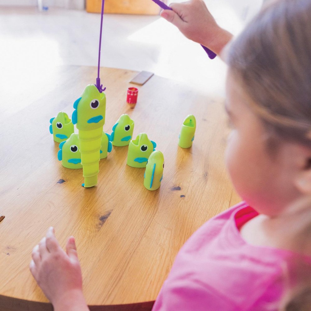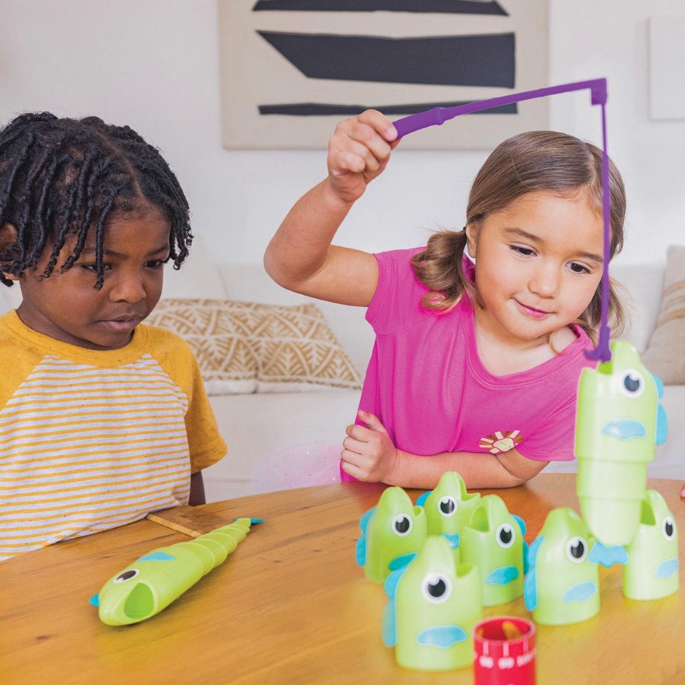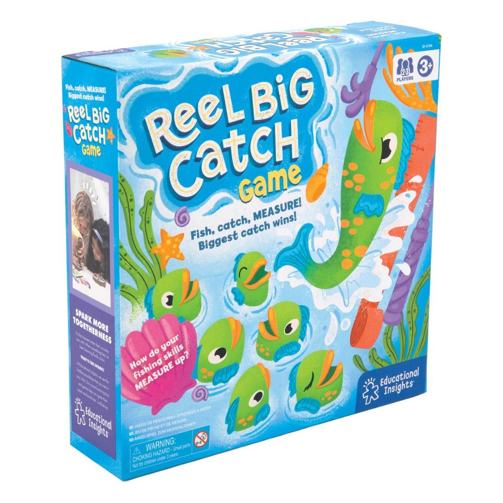 3 years & up. Make a splash at game night with this exciting, hands-on fishing game that's both educational and entertaining! Kids will love using the kid-sized fishing pole to "catch" colorful, telescoping fish. Once caught, players measure their fish using the included measuring cards to see who's landed the biggest catch. It's a great way to build early math skills like size comparison, measurement, and counting-all through active, screen-free play. Includes a durable fishing pole, 9 expanding fish, 4 double-sided measuring cards, and a game guide full of play variations and tips for family fun.