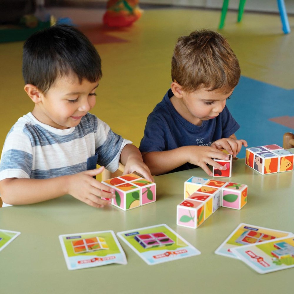 18 months & up. This toddler-friendly magnetic cube puzzle makes a different fruit picture on each side. This puzzle supports early STEM skills, creativity, coordination, and fine motor skills. A safe and playful way to explore magnetism with 4 cubes and 6 build ideas-perfect for little hands and big imaginations!