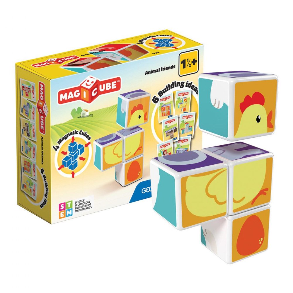 18 months & up. Turn playtime into a hands-on learning adventure with these toddler-friendly magnetic cubes! Designed for little hands, the cubes stick together on all sides, making it easy to build colorful animal friends and simple structures. This set encourages early STEM skills, fine motor development, and imaginative play. With 4 magnetic cubes and 6 fun build ideas, kids can mix, match, and explore while learning the basics of balance, coordination, and magnetism. Made to meet the highest safety standards for worry-free play.