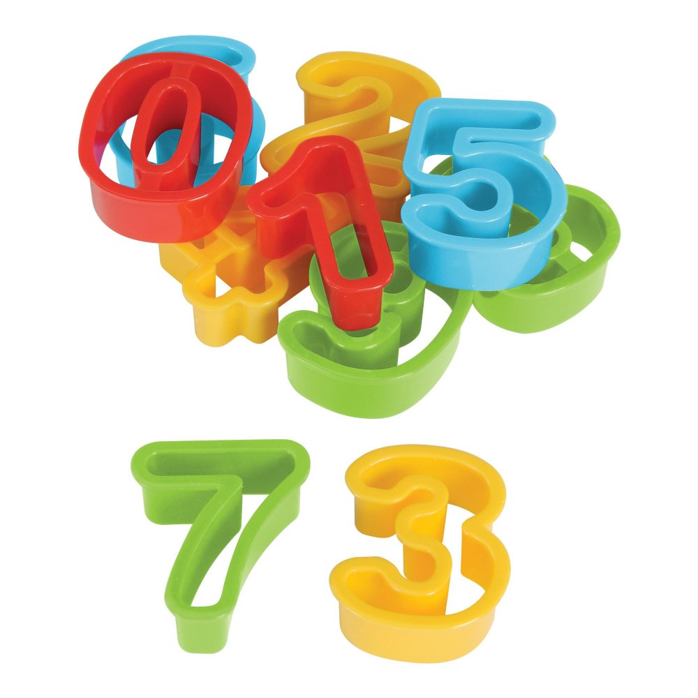 3 years & up. Encourage fine motor skills and creativity with this Numbers Dough Cutter Set. Children can practice counting and number recognition. It's as easy as 1,2,3! This dough cutter set includes the numbers from 0-9.