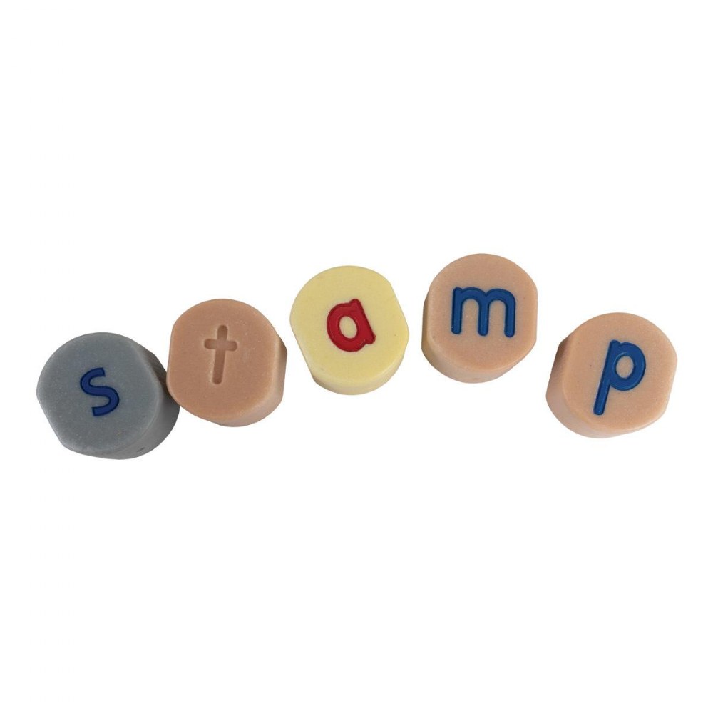 2 years & up. Spark curiosity and early literacy skills with these versatile lowercase alphabet stamping stones. Perfect for encouraging exploration, investigation, and hands-on learning, children will love sorting, collecting, and using them to build simple words. Each durable stone is engraved for clear and consistent stamping in dough, sand, paint, and more. A great way to introduce letters and sounds through open-ended play. Set includes 26 durable stones, one for each lowercase letter.
