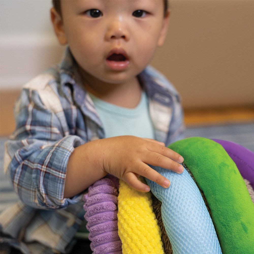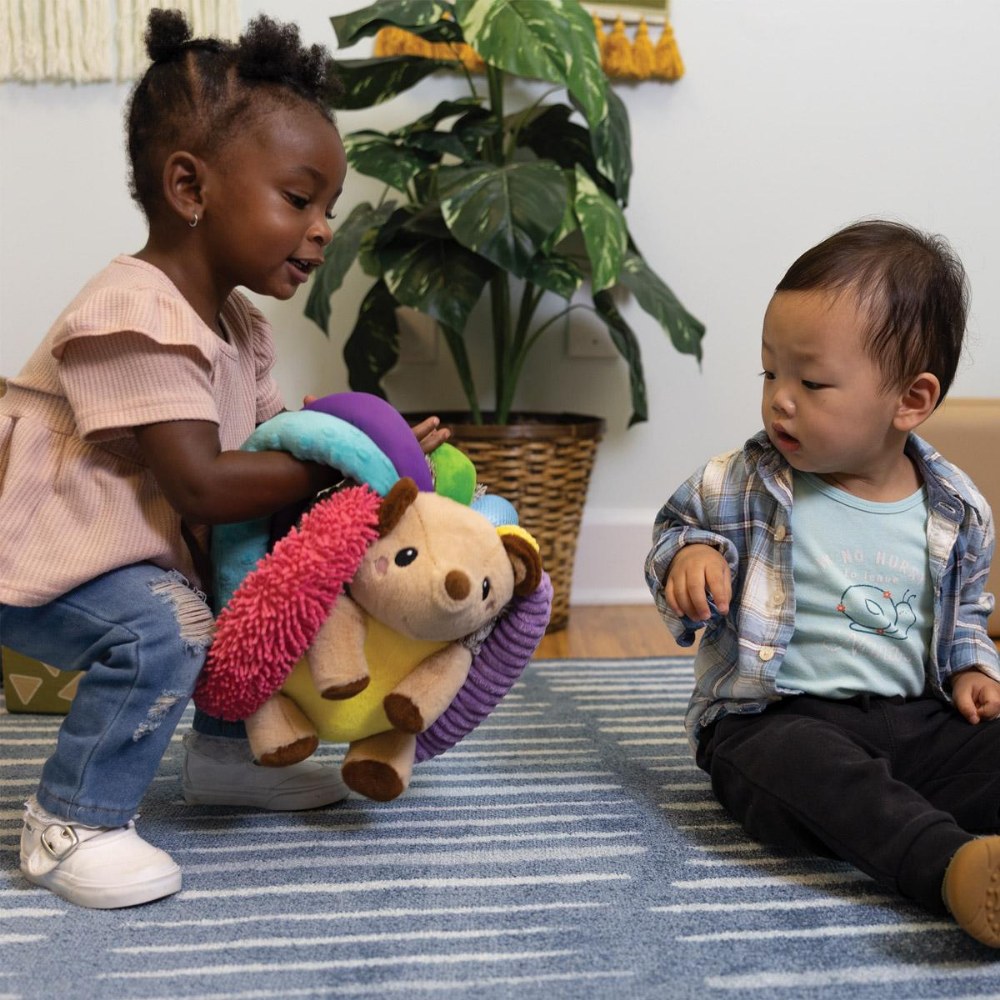 12 months & up. Meet Hugsy the Weighted Hedgehog! Hugsy is a cuddly, friendly hedgehog designed with comforting weight and engaging textures to support moments of calm and sensory exploration. The gentle 2 lb weight offers grounding input, while the playful textures and details invite little hands to explore, fidget, and discover. Hugsy's uniquely designed back also allows kids to intertwine their hands as they hug and hold him for added sensory engagement.