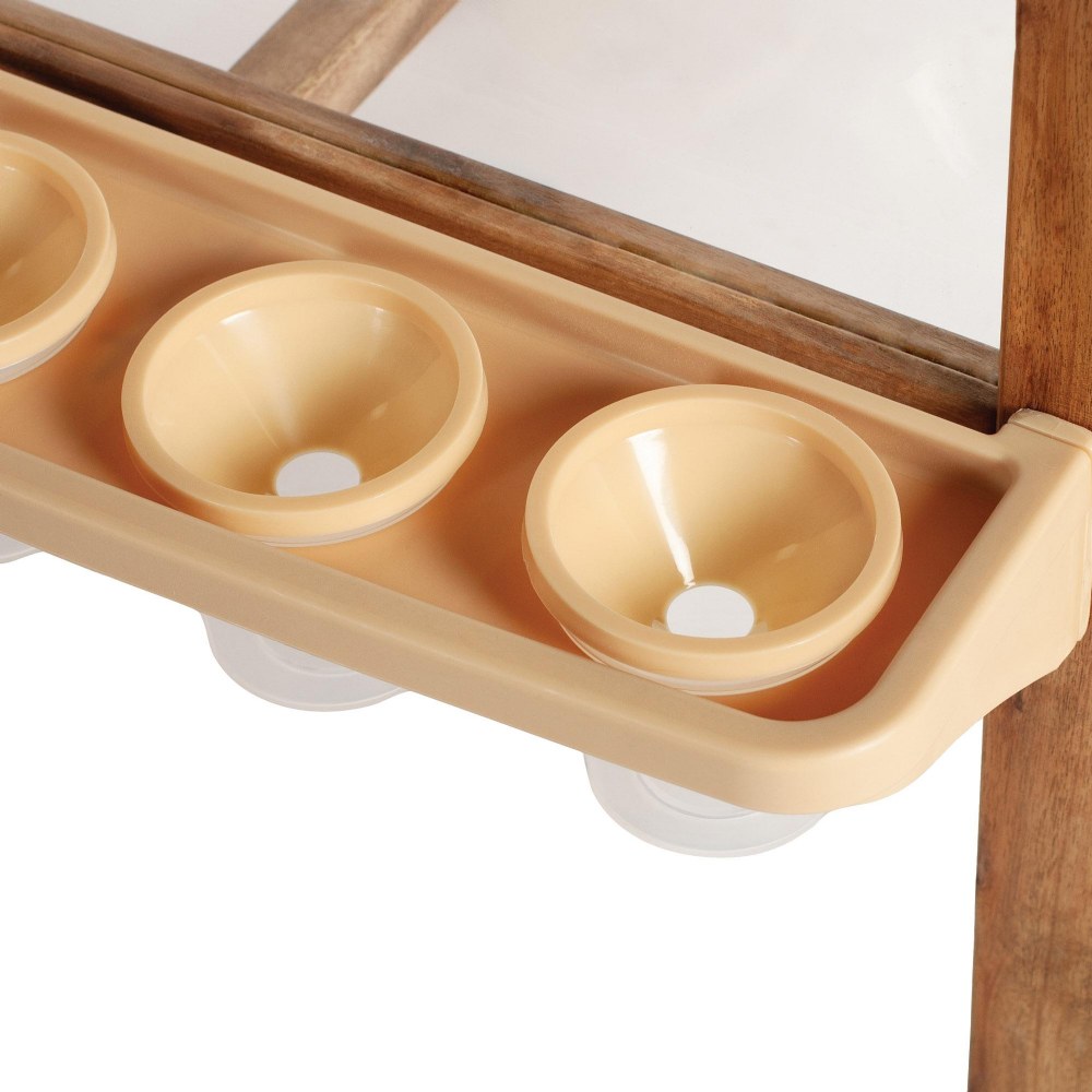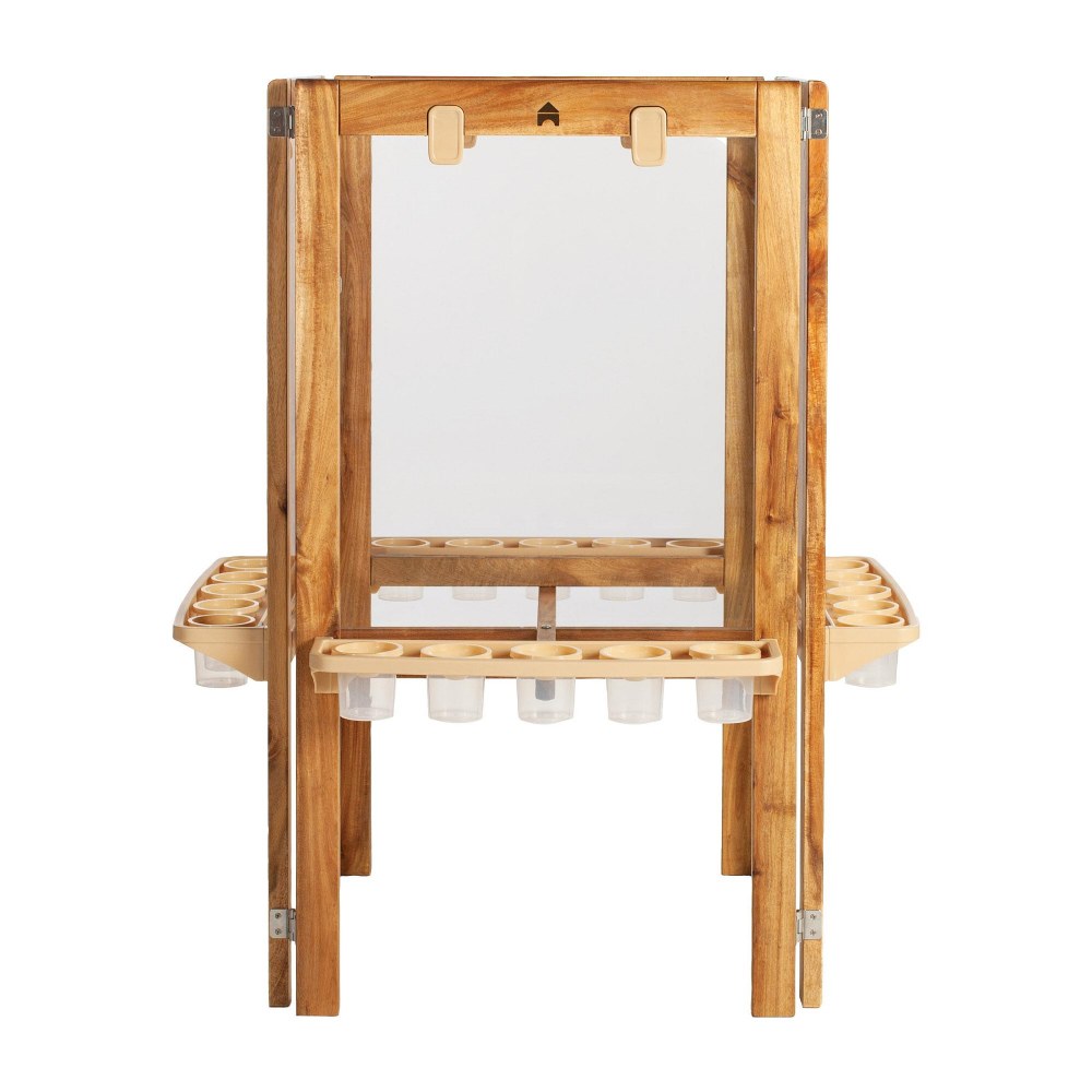 3 years & up. Artistic inspiration can happen anywhere thanks to the Acadia Outdoor Deluxe 4 Sided Art Easel. Large, upright acrylic art surfaces invite collaboration, side-by-side creation and a whole body integration during art time in outdoor learning environments, classrooms, and even backyards or playrooms with multiple children. Made from durable, weather-resistant acacia wood, the items in the Acadia Kids' Outdoor Furniture Collection are designed to withstand the elements and the rigorous play of childhood. Easel includes 4 paint trays, each with 5 paint cups and durable paper clips on each side. Designed for ages 3 and up. Assembly required. Measures 35''L x 35''W x 43''H.