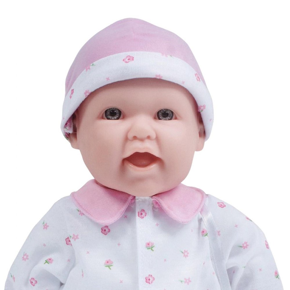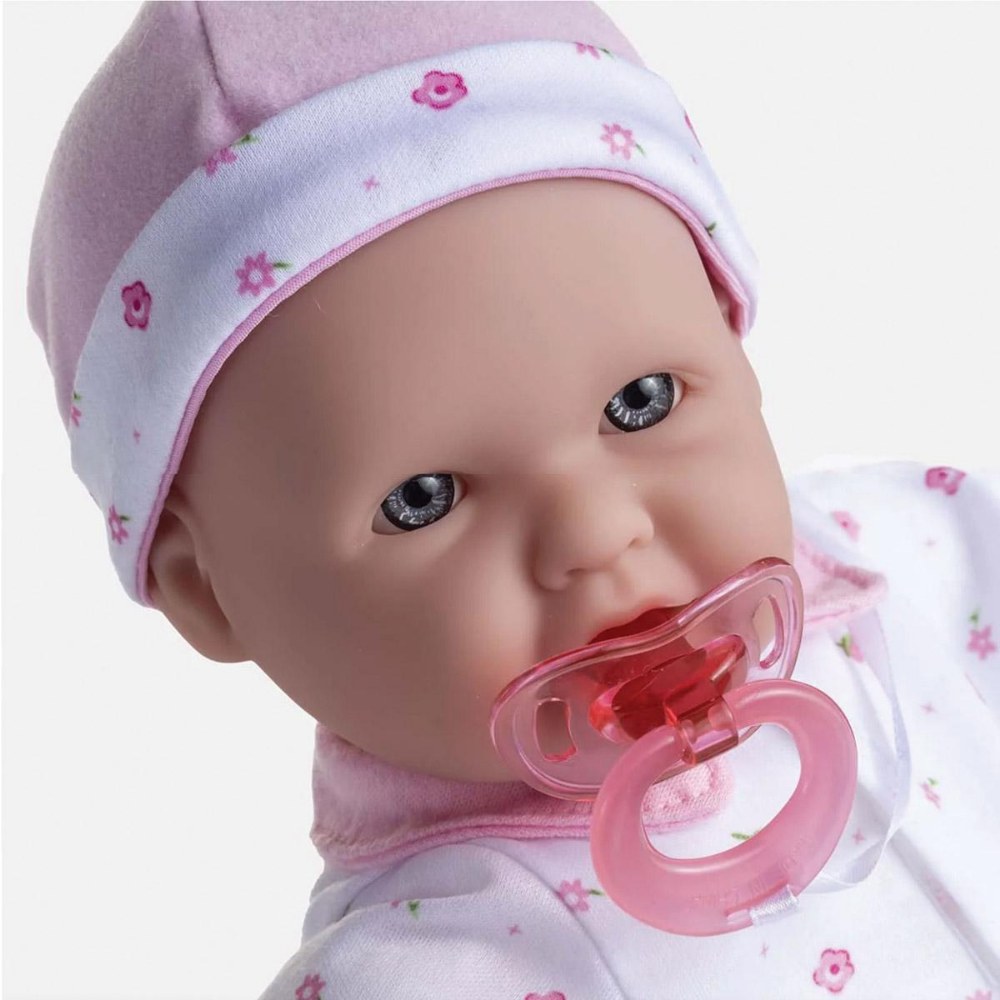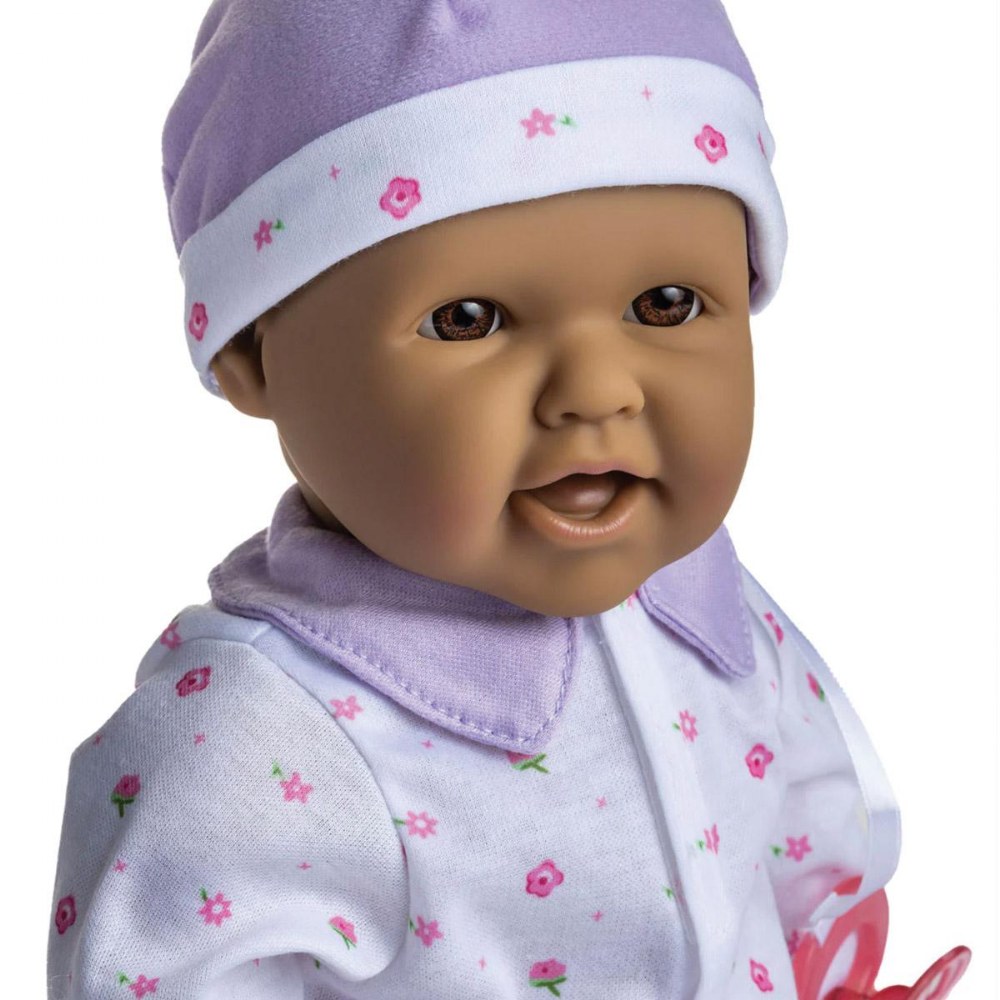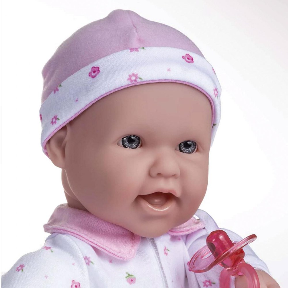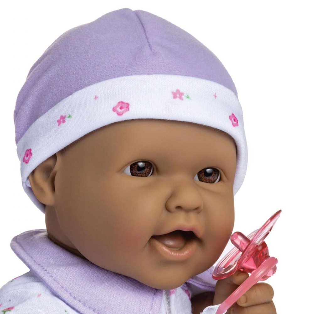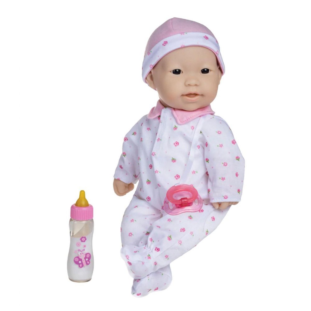 12 months & up. Beautifully detailed life-like features, soft bodies, and easy-to-dress outfits make these dolls a child's favorite. With cute outfits and adorable expressions, these soft, cuddly baby dolls are perfect for little ones to love, feed, and sing to sleep. Each doll has its own pacifier and baby bottle. The pacifier is attached to the outfit; with no buttons or zippers on clothing. No eyelashes or open-close eyelids. BPA and phthalate-free. Ethnic dolls include African American, Caucasian, Asian, and Hispanic. Dolls are 16" long. Available individually or in a set of 4. Outfits may vary from those shown.