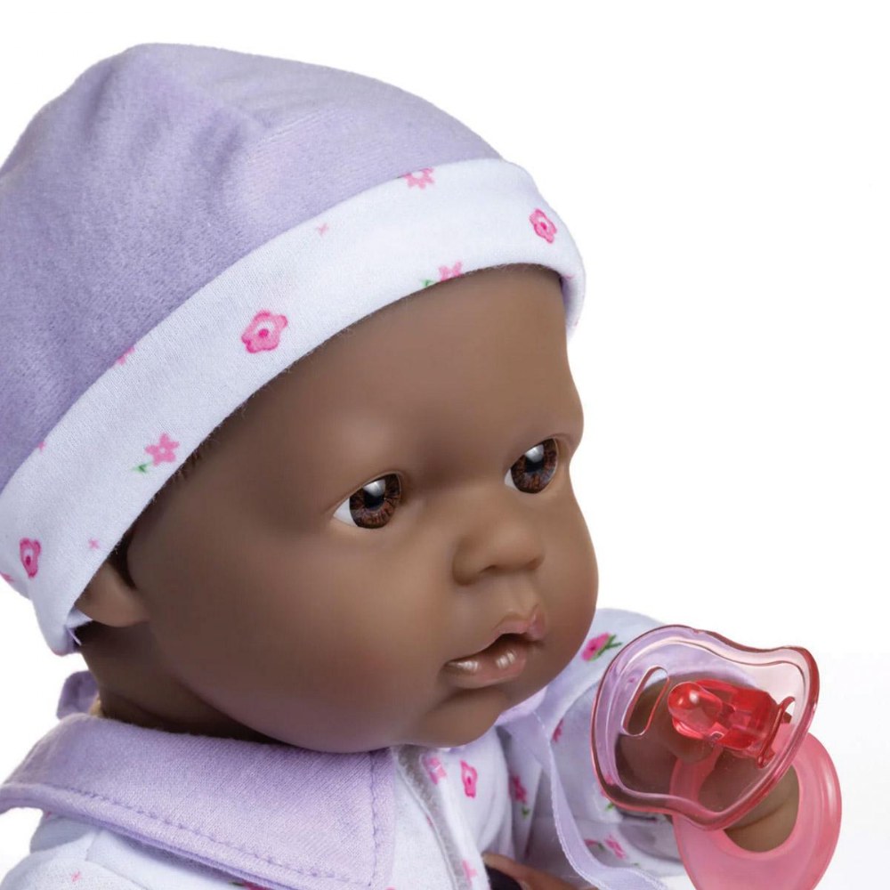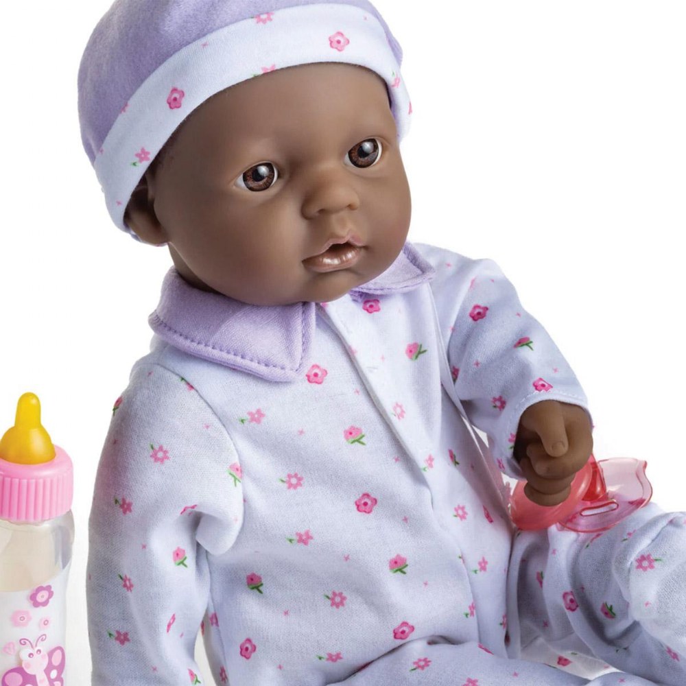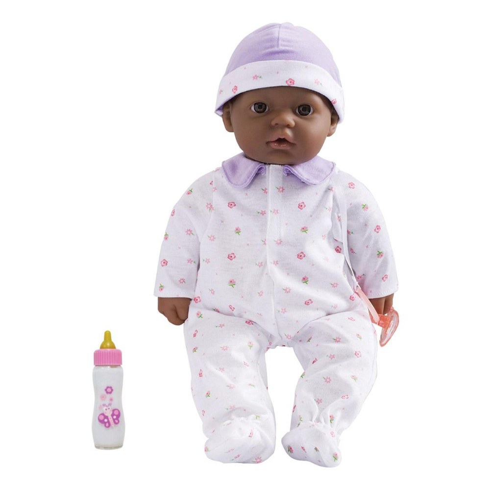 12 months & up. Beautifully detailed life-like features, soft bodies, and easy-to-dress outfits make these dolls a child's favorite. With cute outfits and adorable expressions, these soft, cuddly baby dolls are perfect for little ones to love, feed, and sing to sleep. Each doll has its own pacifier and baby bottle. The pacifier is attached to the outfit; with no buttons or zippers on clothing. No eyelashes or open-close eyelids. BPA and phthalate-free. Ethnic dolls include African American, Caucasian, Asian, and Hispanic. Dolls are 16" long. Available individually or in a set of 4. Outfits may vary from those shown.
