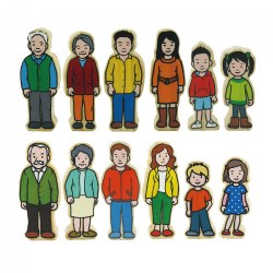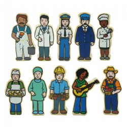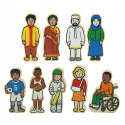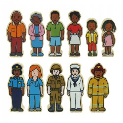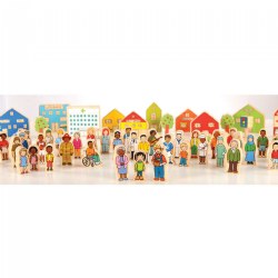 2 years & up. This set of 42 high-quality wooden figurines include community workers, athletes, and people of varying ages, cultures, and abilities. Promote block play, dramatic play, and fine motor skills when you add these wonderful friends to your classroom. Encourage children to point our figures that are familiar to them. Use these wooden family and community people to teach a fun lesson about careers, families, diversity, and inclusion. The figures measure approximately 2.25" to 3" high.