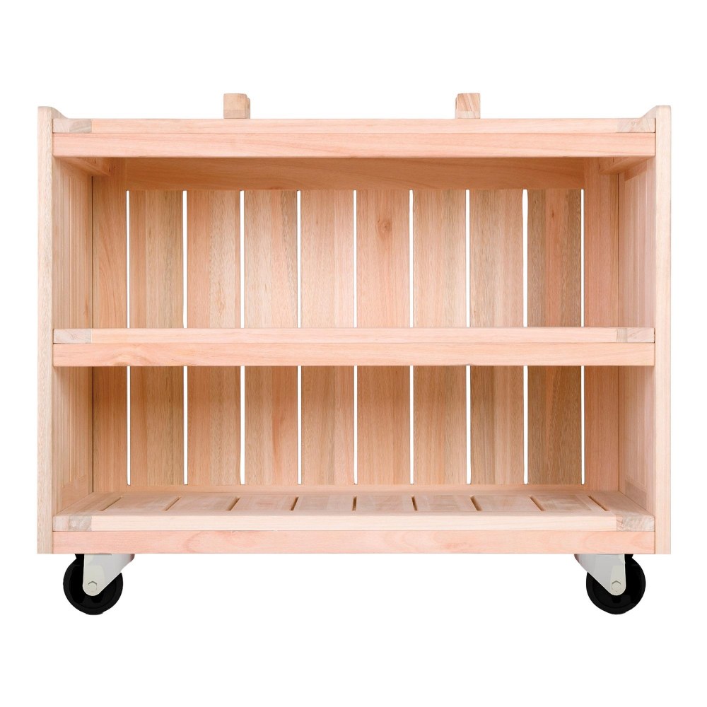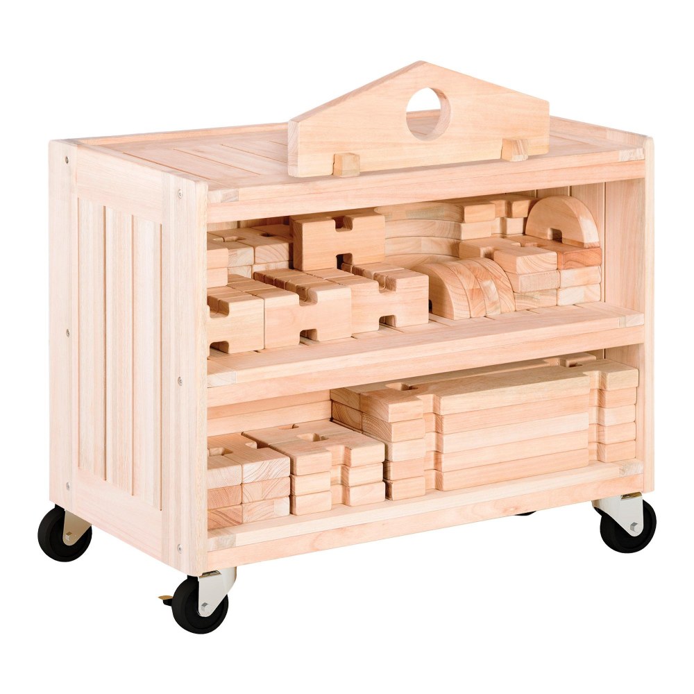 Transport your Notch Blocks inside and outside the classroom easily with the spacious, durable Notch Blocks Storage Cart. Barrel bolt construction keeps the wide, solid wood cart sturdy when holding all of your Notch Blocks. Features freely rotating, u-bracket casters for easy movement in any direction. Cleats on the top of the cart provides additional piece storage. Ships ready to assemble. Store in a cool, dry place. Measures 32.5"W x 27"H x 18"D. Notch Builders sold separately.