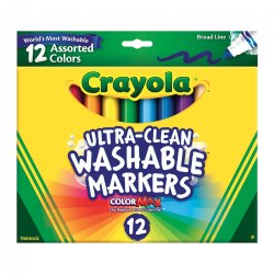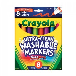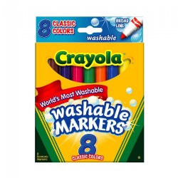 3 years & up. Creating just got more fun with these bright colored Crayola® Washable Markers 8 Count! These markers are a great addition to any classroom art materials. The markers wash easily from skin and most fabrics, inviting creativity from users and reducing clean-up. This set of markers encourages creativity, color recognition, and fine motor skills. Encourage children to identify the color of the markers as they draw. Markers are non-toxic and made in the USA. Set of 10. Color types available are the Classic 8 count, the Classic 12 count, the Bold 8 count, and the Tropical 8 count.