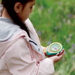 4 years & up. Your child will enjoy finding their way with this real working Compass Set! Compass is fully-functioning and will give amazing opportunities to teach your kids about navigation and map reading. This two-piece camper's set includes the compass and carabiner clip to help stow your child's gear. Compass features a mirror on the reverse side that can be used to reflect the sun for signaling, adding to the fun value of this set. Ideal for encouraging a love for exploration, maps and nature. Take it camping, on field trips or just out into the garden!