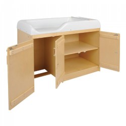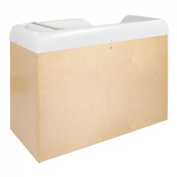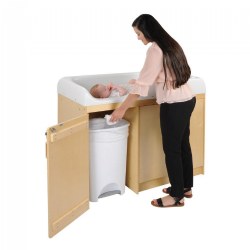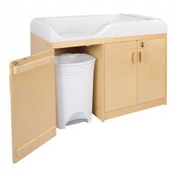 Made from sturdy birch with a deep plastic molded top, the Infant Changing Table provides a durable and easy-to-clean addition to the diapering area in infant and toddler classrooms. Storage cabinets conveniently keep necessary materials handy and organized with locking diaper pail area. Use with our changing table pad (item #91133) and 225'L x 18"W changing table paper rolls (item #87207), each sold separately. Changing table measures 46.5"W x 37"H x 23"D. Clean with mild soap and water. Do not clean with cleansers, bleach, etc.