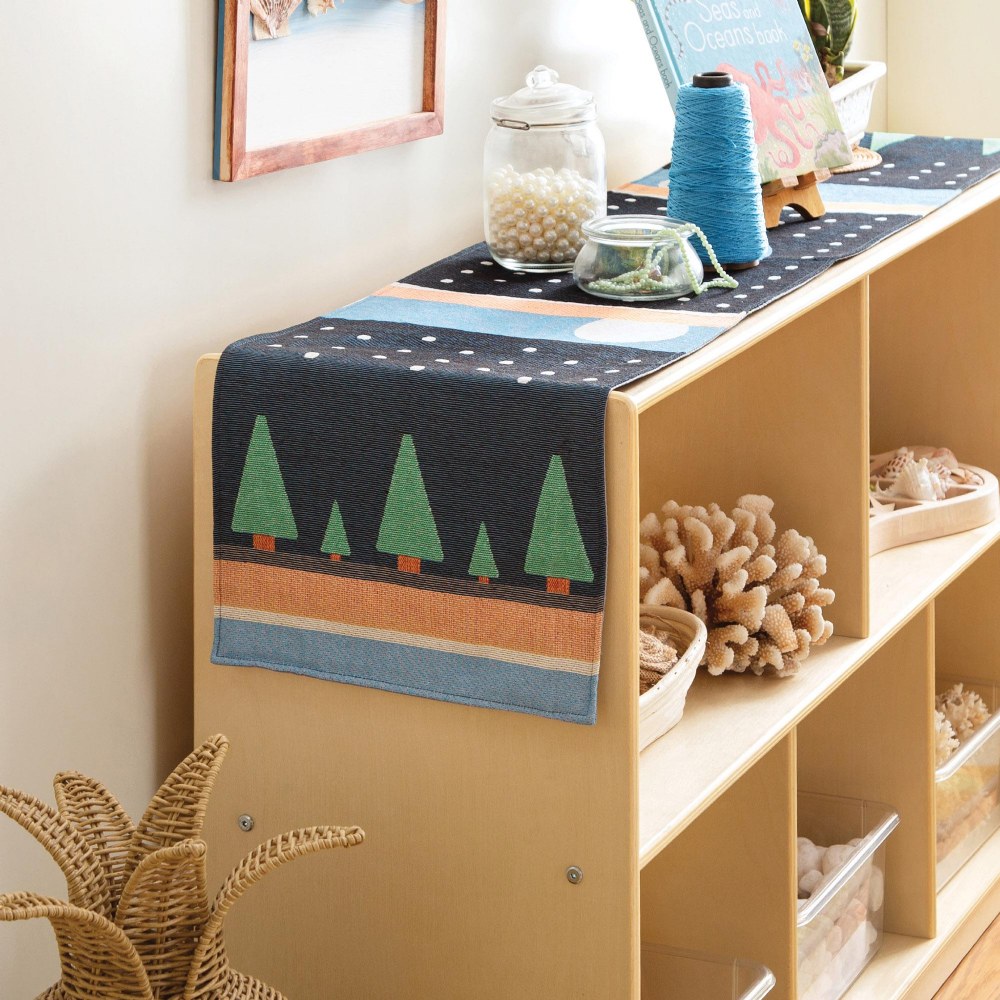 Transform your space with colorful details and inviting glimpses of home through the incorporation of decorative fabric runners. Children will be attracted to the interesting pattern and the rich colors that will provide them with a chance to explore lessons about changing seasons. These soft, single-sided runners fit across tables and along the tops of shelves, adding a cozy element to any classroom aesthetic. Measures 64"L x 13"W.
