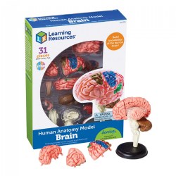 Grades 3 & up. Students can look inside their own heads with this realistic model. The plastic model includes a stand and guide with facts and photo-illustrated assembly instructions. Features cerebellum, frontal, parietal, temporal, and occipital lobes; corpus callosum, brain stem, hippocampus, ventricles, insula, corpus striatum, internal capsule, and lentiform nucleus. Perfect in a nervous system center for a deeper understanding of how the parts of the brain work together. 31-piece model measures 3.8"H when assembled.