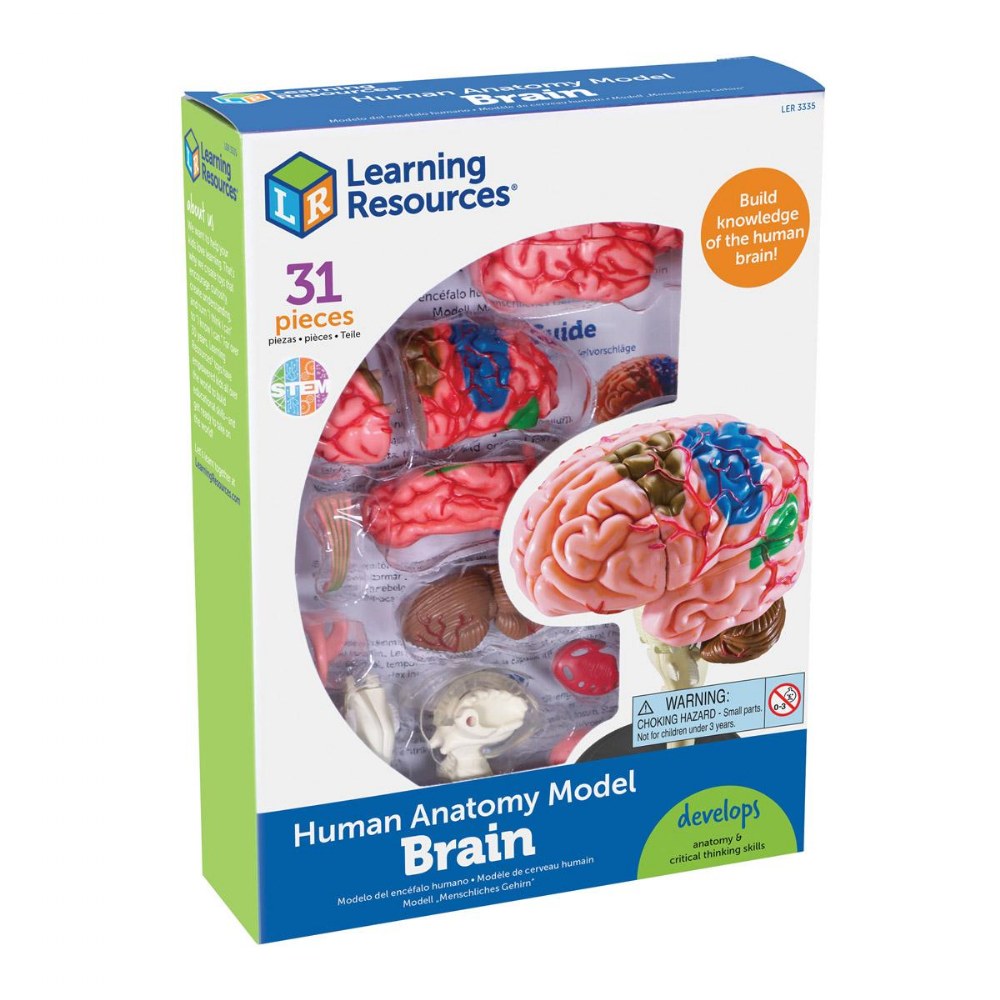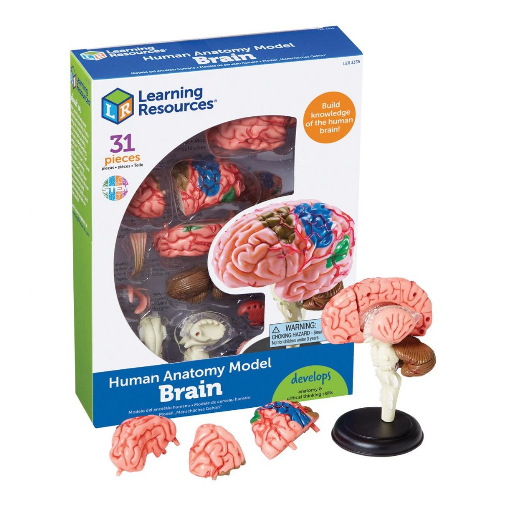 Grades 3 & up. Students can look inside their own heads with this realistic model. The plastic model includes a stand and guide with facts and photo-illustrated assembly instructions. Features cerebellum, frontal, parietal, temporal, and occipital lobes; corpus callosum, brain stem, hippocampus, ventricles, insula, corpus striatum, internal capsule, and lentiform nucleus. Perfect in a nervous system center for a deeper understanding of how the parts of the brain work together. 31-piece model measures 3.8"H when assembled.