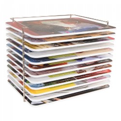 Organize puzzles and free up shelf space with this sturdy wire puzzle rack. Holds up to twelve 9" x 12" puzzles. Puzzles not included.