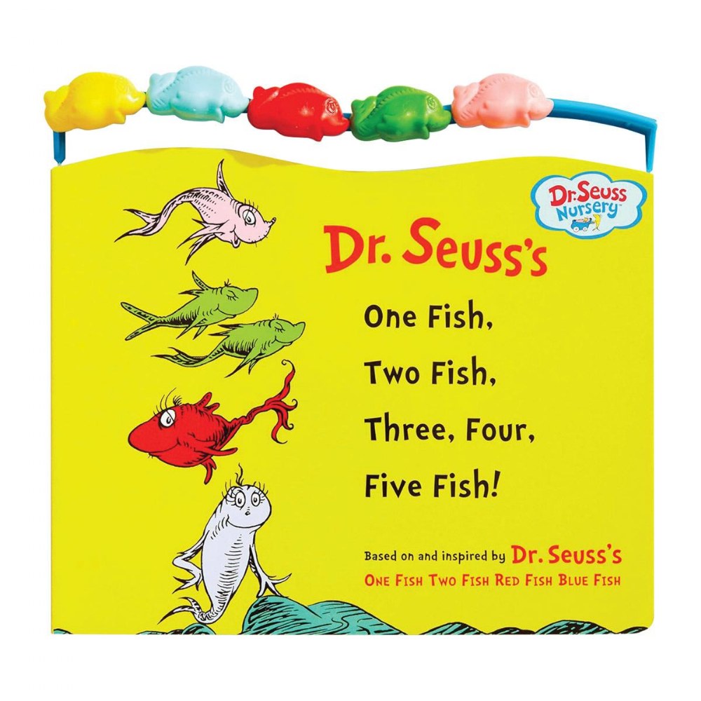 2 years & up. Bring the magical world of Dr. Seuss to life with the turn of a page! Read along to this interactive story "One Fish, Two Fish, Three, Four, Five Fish" introducing children to the fun of reading through his signature illustrations and rhymes. Learn to count while reading by moving the five fish-shaped beads across the top of the book. Board book includes 12 pages.