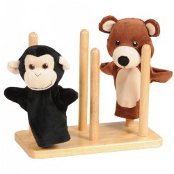 Wooden, Tiered Puppet Stand - Holds 6 Puppets