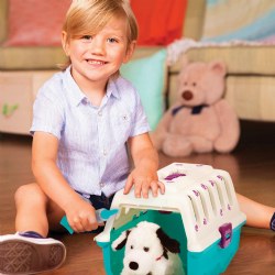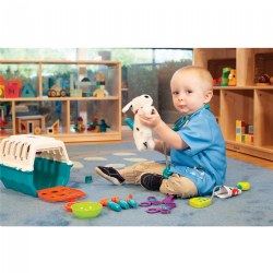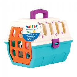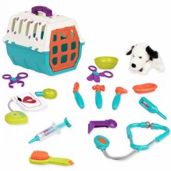 2 years & up. Caring for animals teaches children compassion. This 16 piece set has everything a pretend vet will need to take care of man's best friend. Set includes: puppy, vet cage, bowl, tray, brush, blood pressure meter, ear examiner, hammer, tongs, scissors, tweezers, 2-piece syringe, stethoscope, and thermometer. Colors may vary.