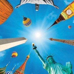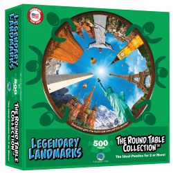 8 years & up. Everyone has the best seat around this puzzle! With the top of the image at the center and the bottom around the entire circle, this unique circle design allows for 2 or more children to work on it at one time. This puzzle allows you to visit some of the world's greatest landmarks. Enjoy building the Statue of Liberty, the Eiffel Tower, Big Ben, the statue of Christ the Redeemer, Devil's Tower, the Washington Monument, and Saint Basil's Cathedral in a monumental puzzle experience! 500 pieces. Assembled puzzle measures 19" diameter.