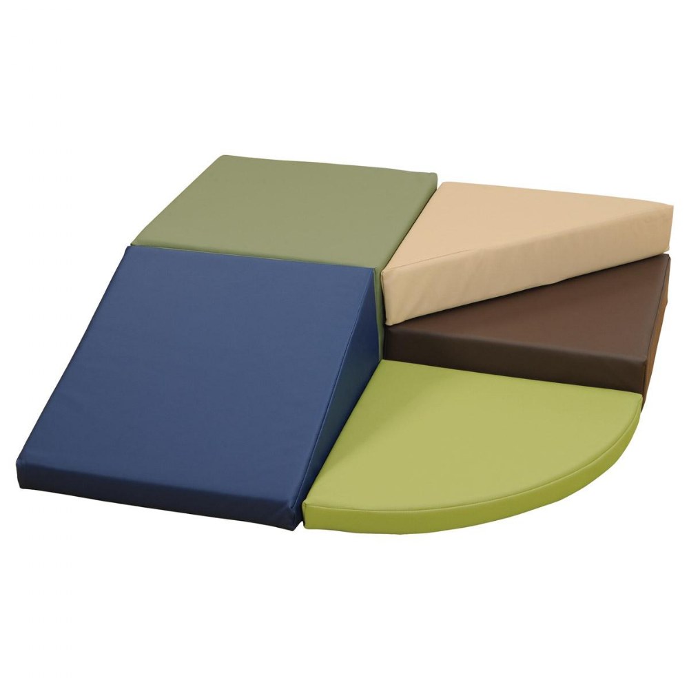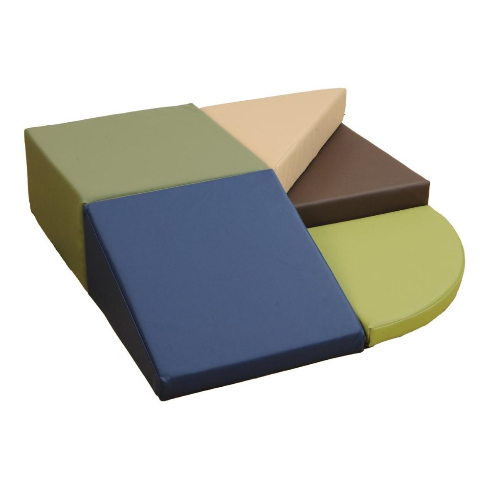 6 months - 2 years. Provide a thoughtful transition piece that will assist children in acclimating to and mastering their surroundings. Cushioned climbers provide beginner crawlers the perfect place to exercise their newfound gross motor skills. The sturdy Comfort Toddler Mountain has curved steps and a straight ramp to crawl, climb and slide down. Five multi-height, solid sponge pieces in the contemporary color palette fit securely together with hook and loop closures. An appropriately sized, soft climber encourages toddlers to practice their budding balance and coordination skills in a safe, exploratory environment. Climber has an easy to clean surface--simply wipe clean with a damp cloth. Measures 45"L x 45"W x 18"H. One year warranty.