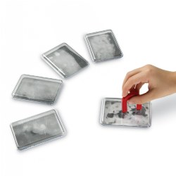 3 years & up. Introduce magnetism in your next STEM lesson with these Magnetic Iron Filings in Durable Plastic for Visualizing Magnetism. These filings are encased in a plastic container to prevent messes. Simply move the magnet across the container and watch as the filings move towards it. This set promotes discovery, exploration, and early STEM concepts. Set of five blocks. Measures 3"L x 2"W.